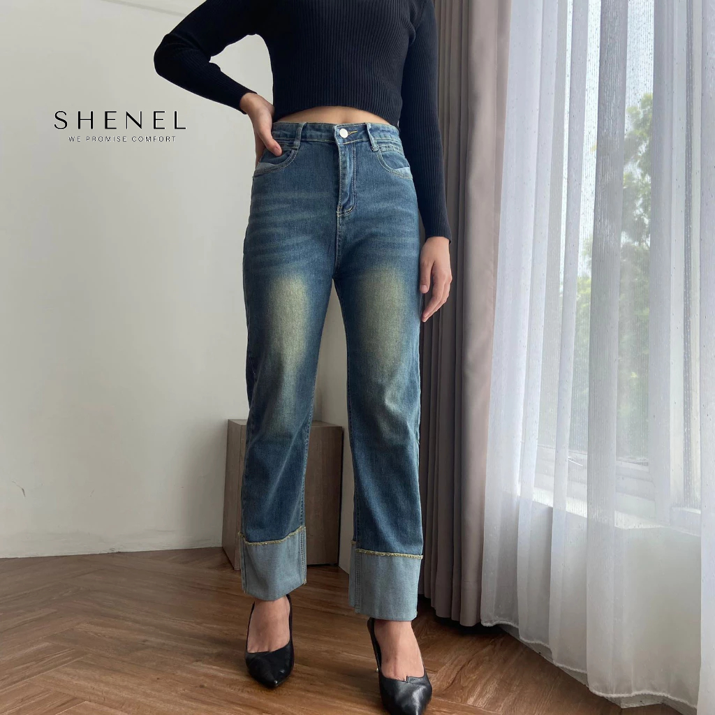 Shenel | Hailey Jeans | Celana Jeans Wanita High Waist Kulot Jeans Trending Stretchy Jeans Retro Skinny High Waist Import