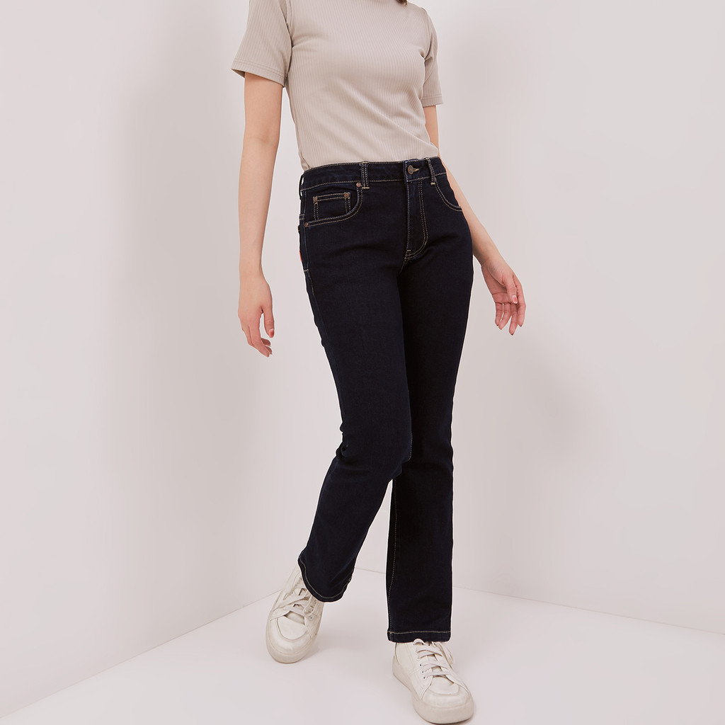 DUST Celana Mid Rise Bootcut Jeans Laira Medium Dark Blue (D. 31308)
