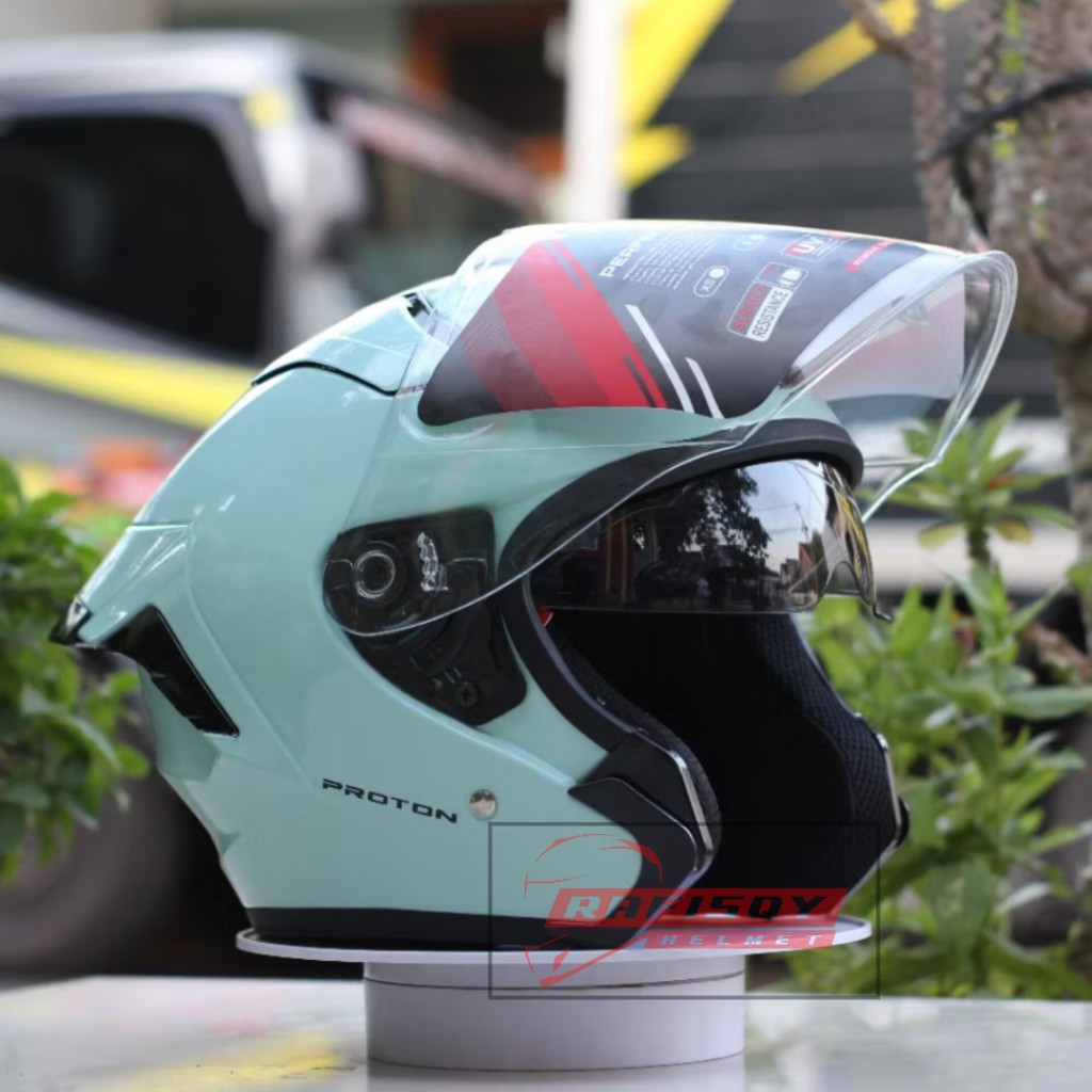 Helm HRV PROTON DOUBLE VISOR putih kaca bening | helm half face hrv 2visor SNI motorcycle