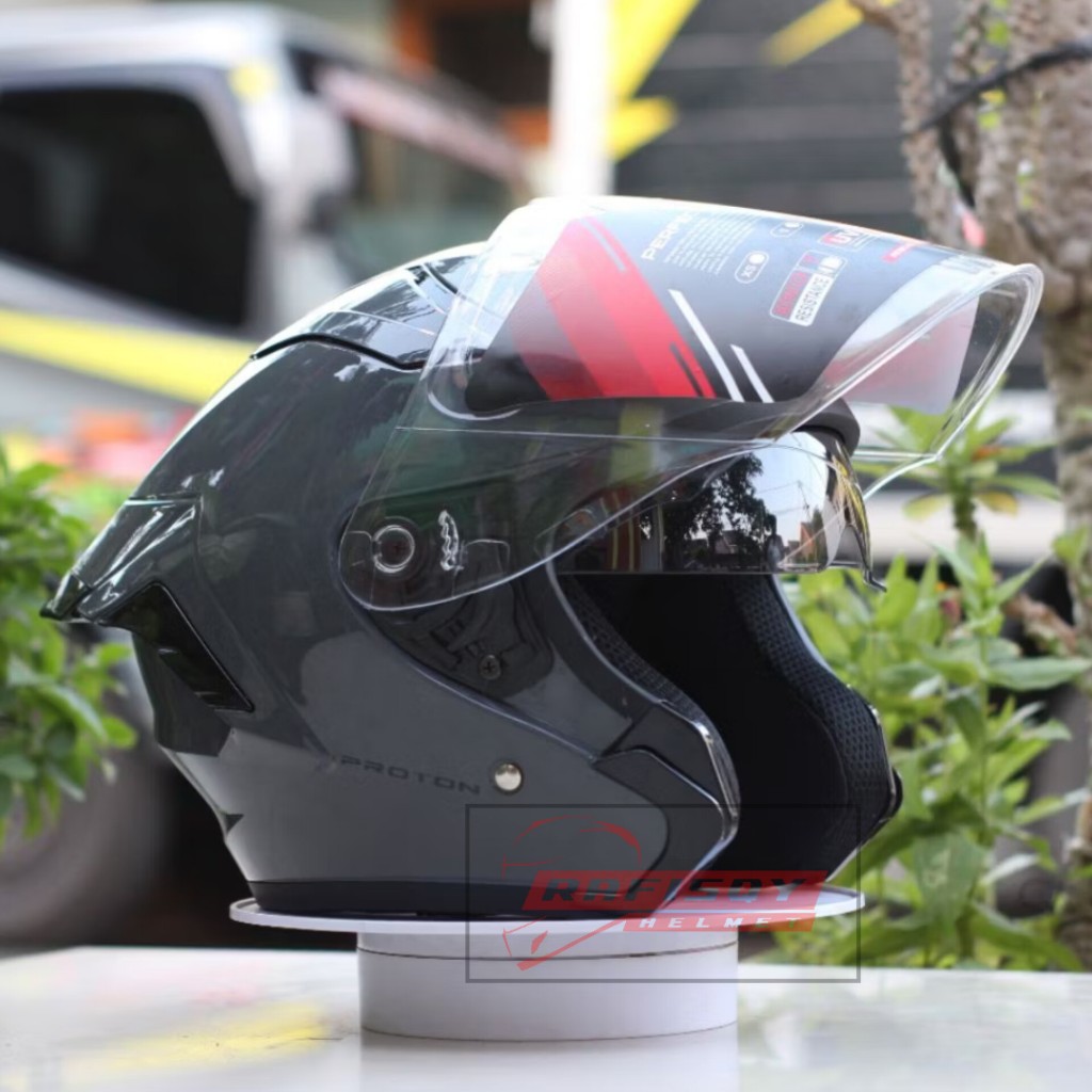 Helm HRV PROTON DOUBLE VISOR half face | halfface helmet proton 2V SNI kaca bening dewasa