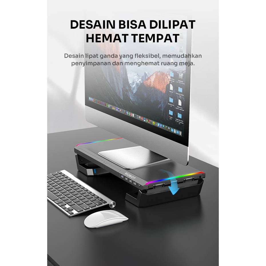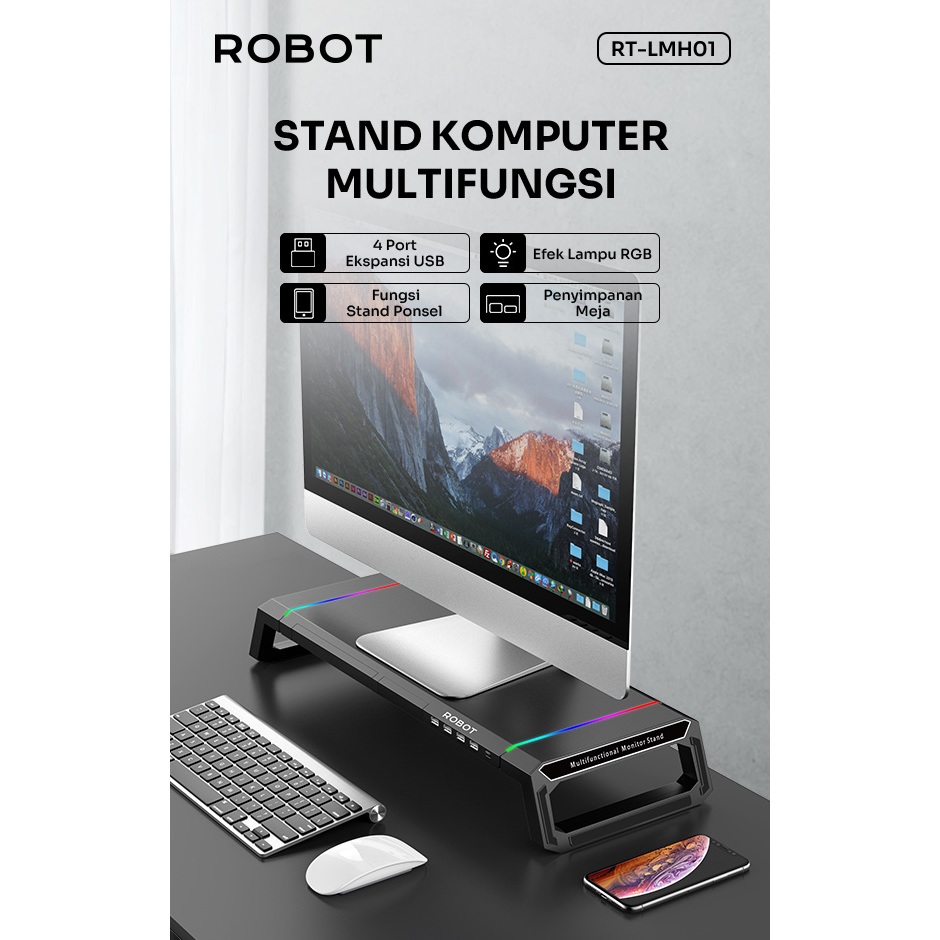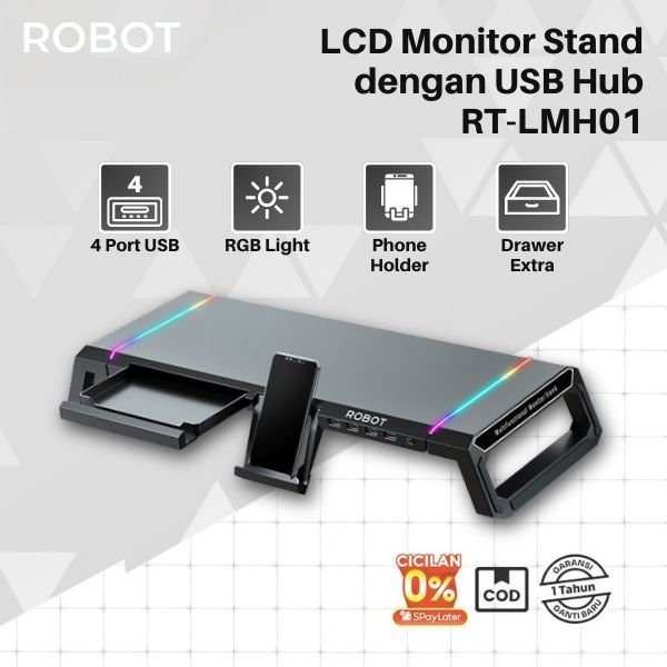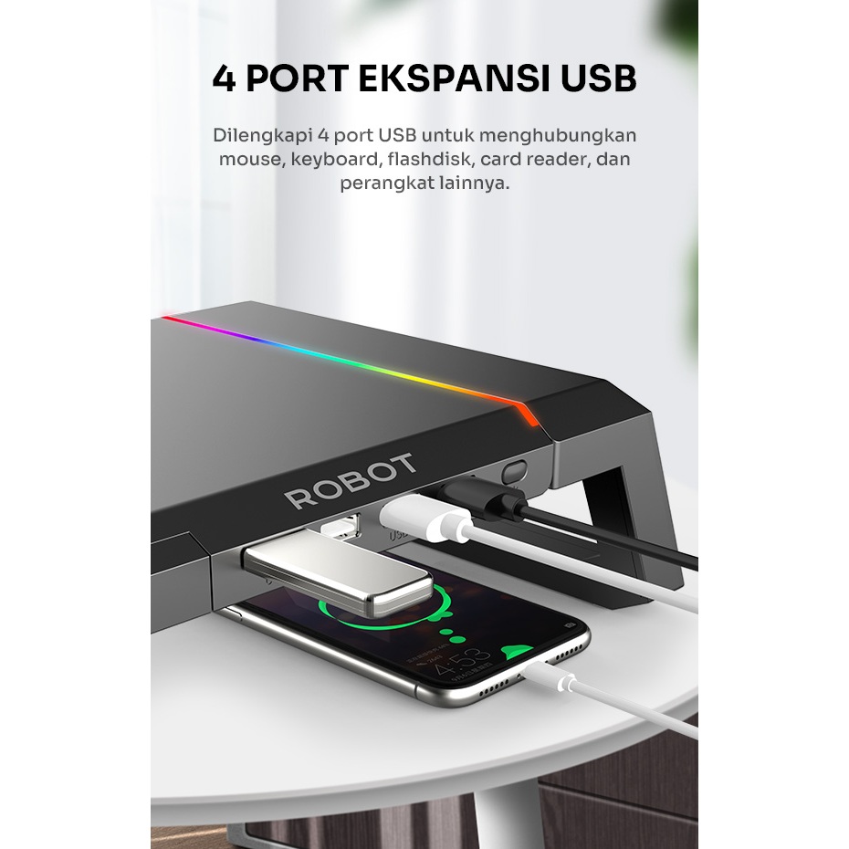 ROBOT LCD Monitor Stand Multifungsi dengan USB-Hub RT-LMH01 Phone Holde 4 Port USB RGB - Garansi Resmi 1 Tahun