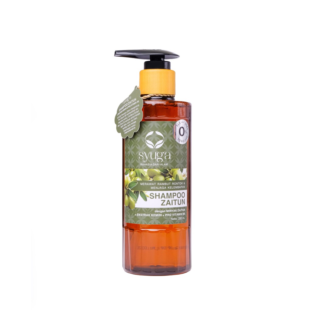 Syuga Shampoo Zaitun 250ml - Sampo Non-SLS dengan Pro Vit B5 untuk Mencegah Rambut Rontok, Iritasi karena Ketombe, Rambut Kering & Kusam, Cocok Kulit Kepala Sensitif