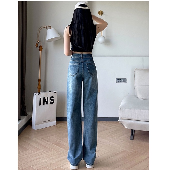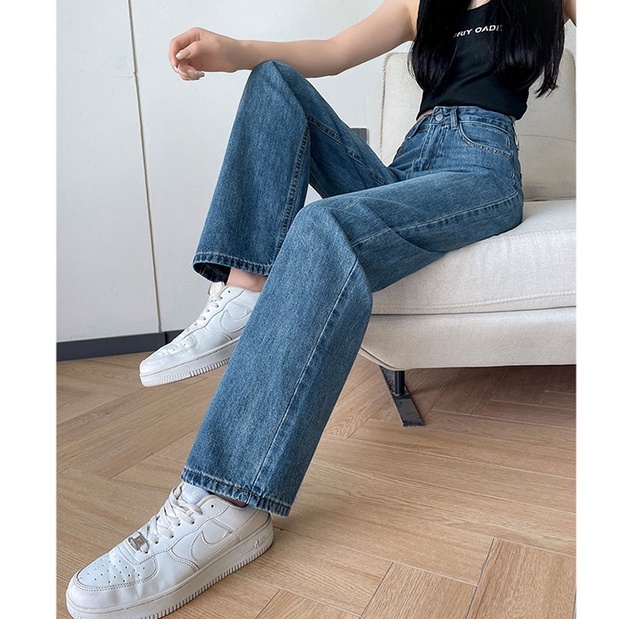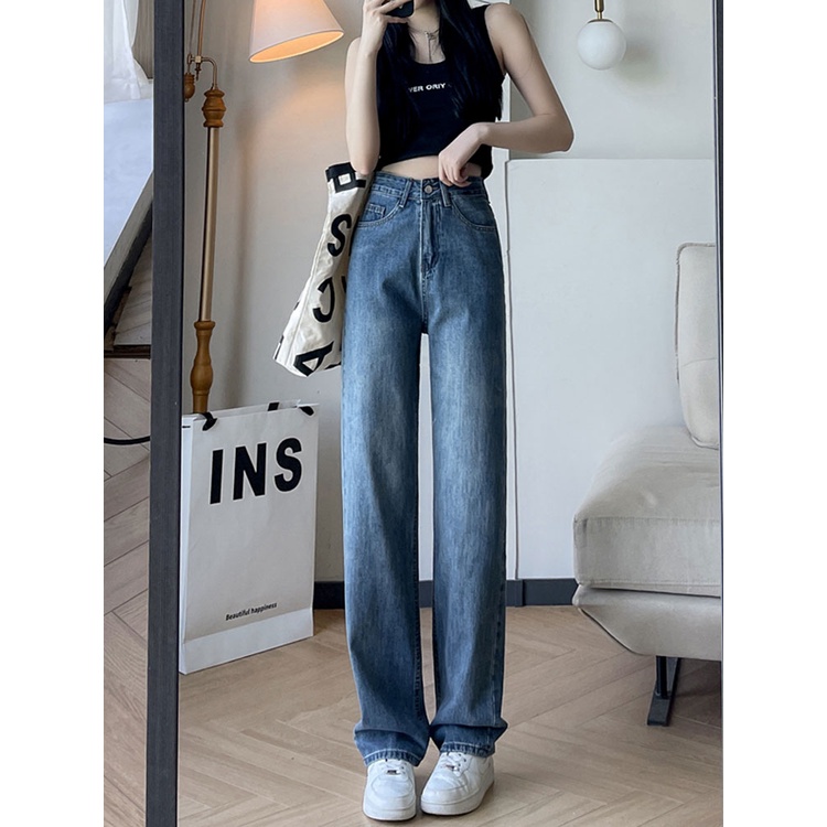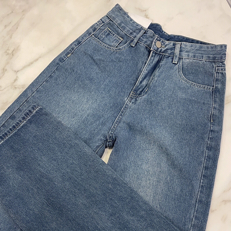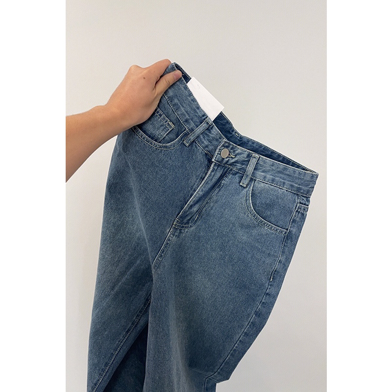 Biru Retro Hight Waist Kulot Celana Jeans Wanita Korea