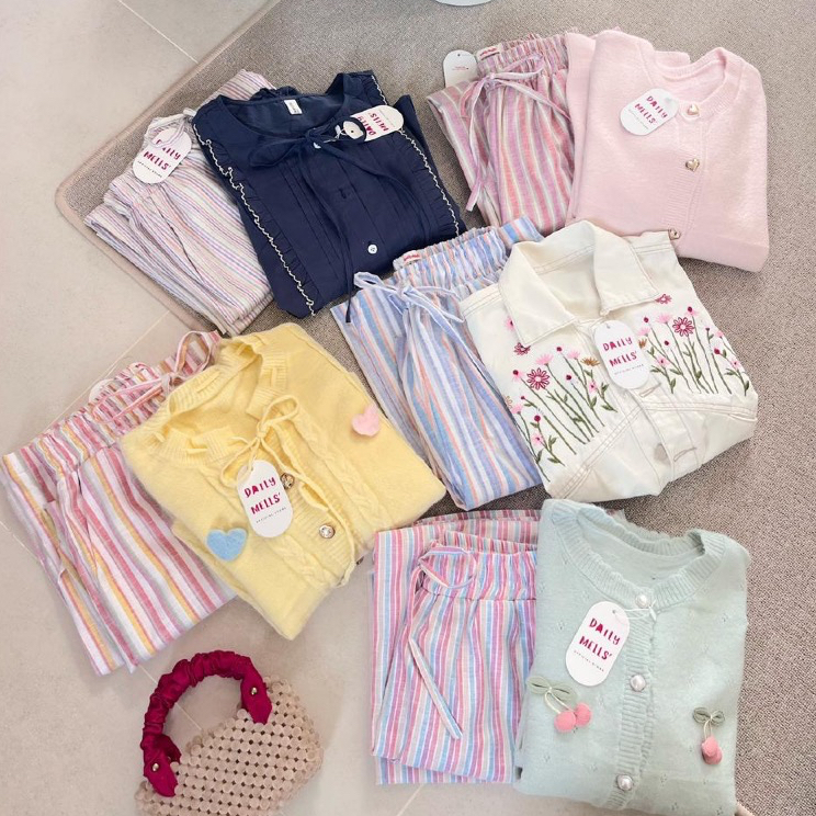 DAILYMELLS Celana Stripe Catton Celana Salur Linen Pants / celana wanita / celana kulot / celana salur