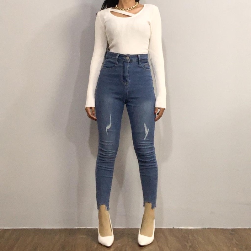 E44 Jeans | Celana panjang Highwaist wanita Jeans premium Jeans wanita polos ripped jeans High waist jeans wanita Skinny Jeans