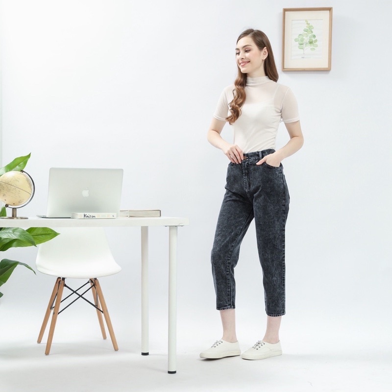 Nora Basic Jeans Celana Jeans Wanita Polos Pinggang karet