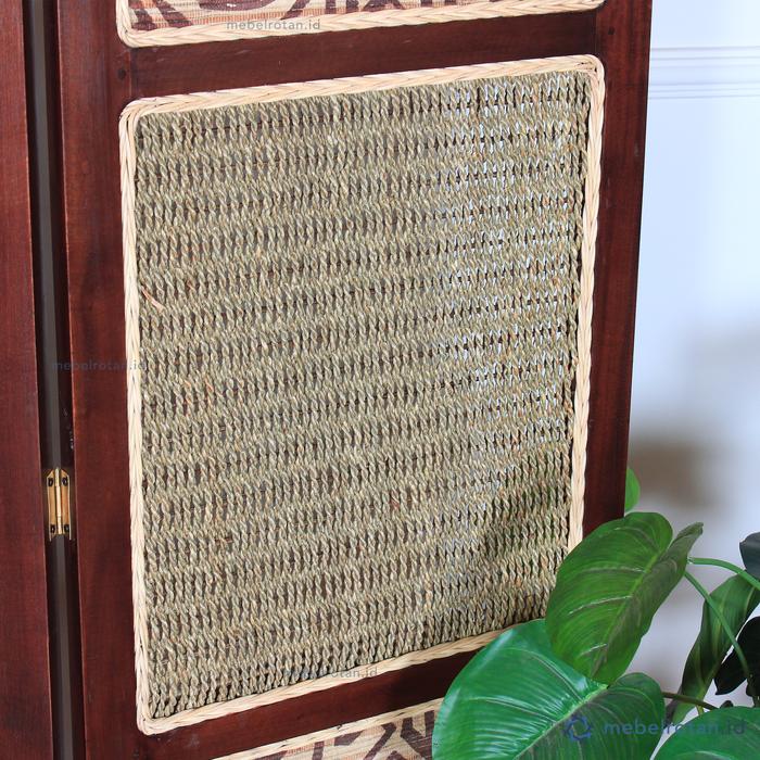 Penyekat Ruang / Partisi Ruangan / Sketsel Kayu Minimalis Square Batik 4Daun - Natural