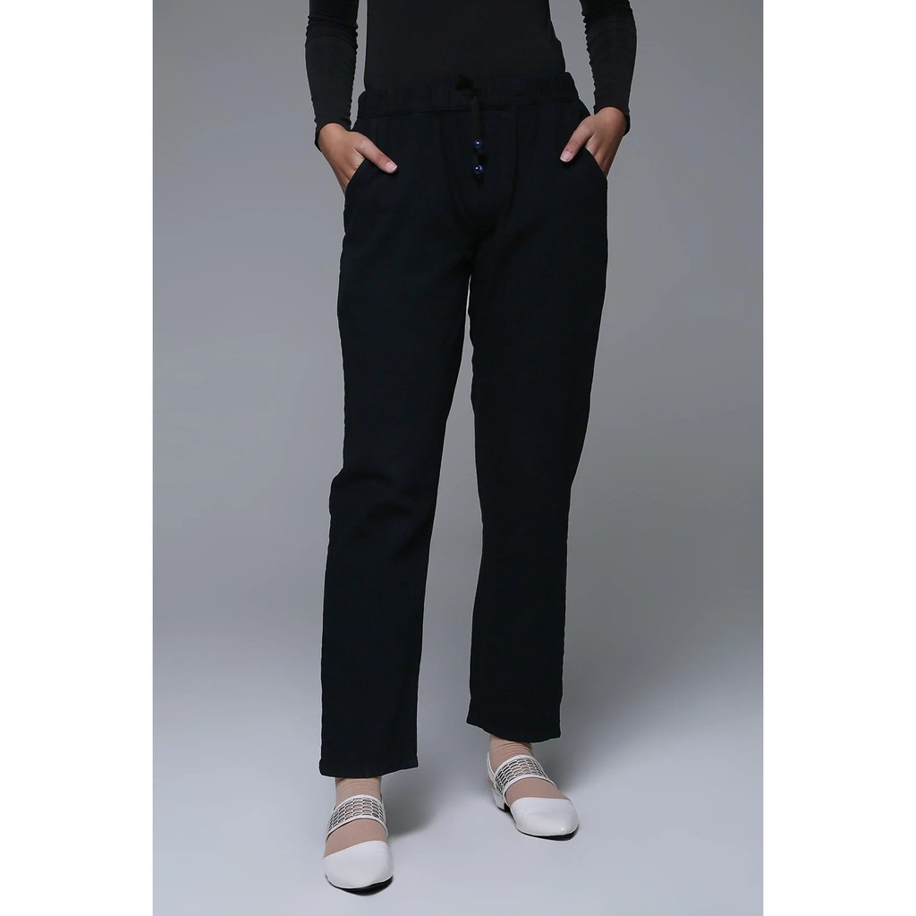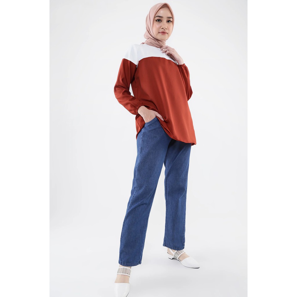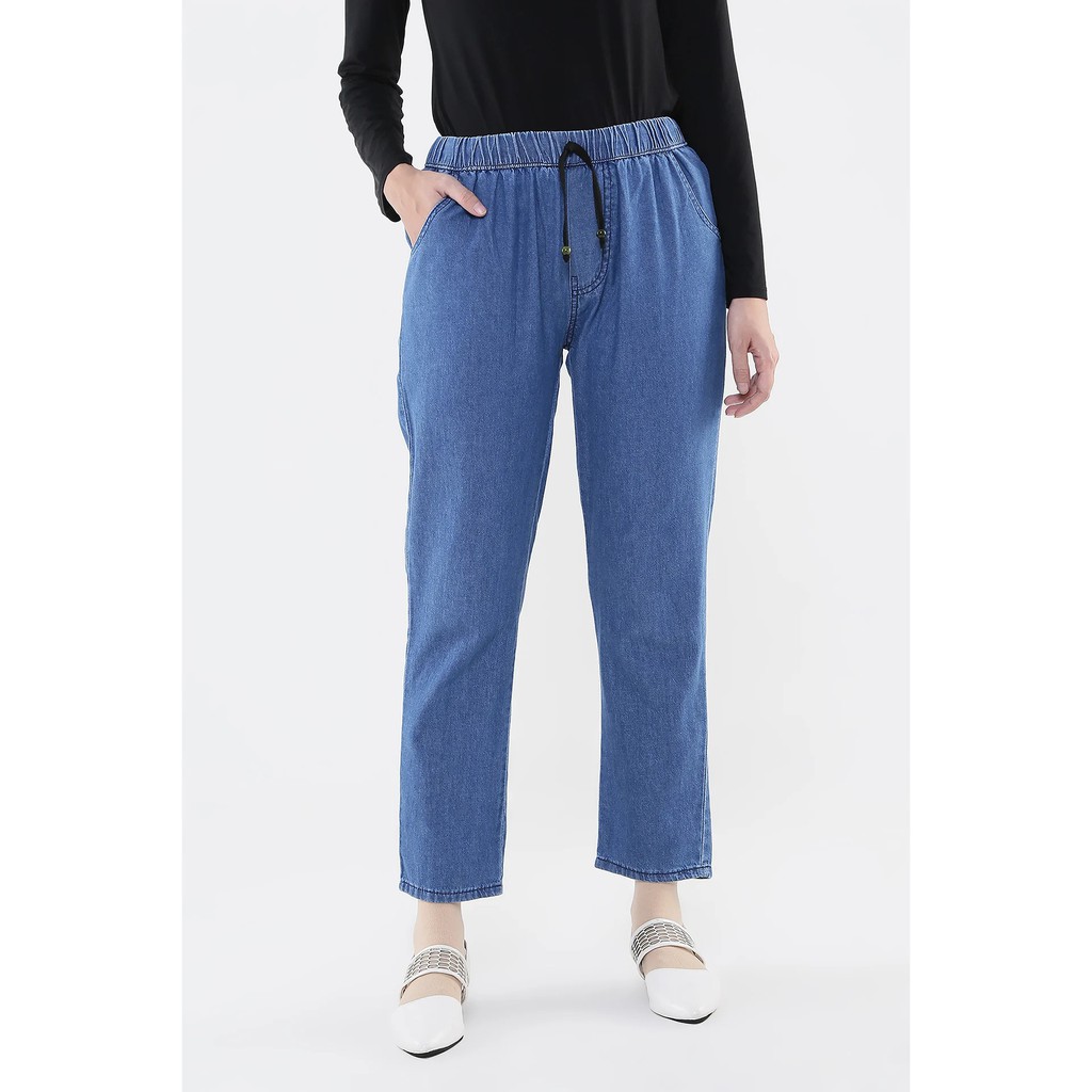 Longpant Denim Daily LEZAHRASIGNATURE Bawahan Muslim Wanita Celana Baggy Basic Kaki Lurus Panjang 93cm PInggang Karet