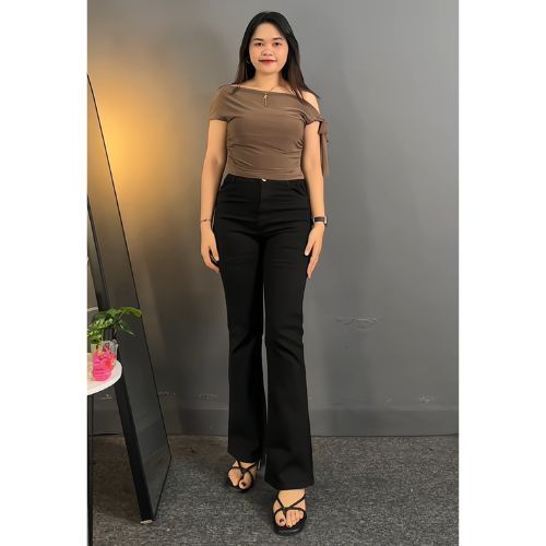 Celana Highwaist Cutbray Jeans Hitam Melar Stret-SELIMIYE JEANS