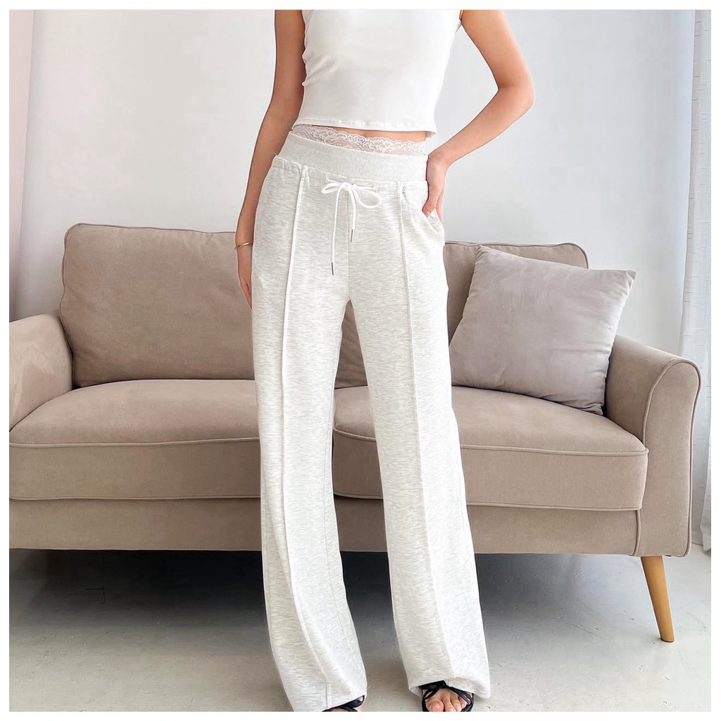 MORA LACE PANT / New Celana Kulot Lace dipinggang Wanita Highwaist Pants Knit Premium Strecht