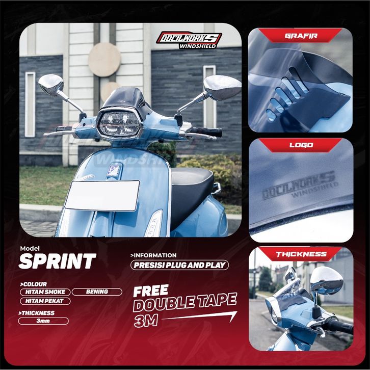 [Star] Docilworks - Visor Windshield Vespa Sprint Primavera Lx GTS Vespa