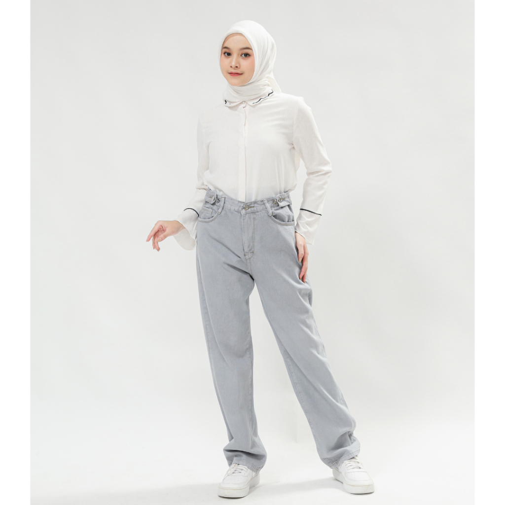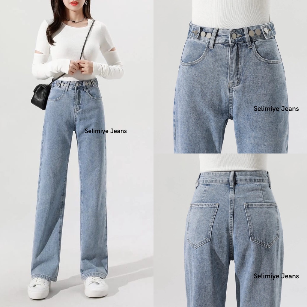 Celana High waist Jeans Wanita Pinggang yang dapat di sesuaikan