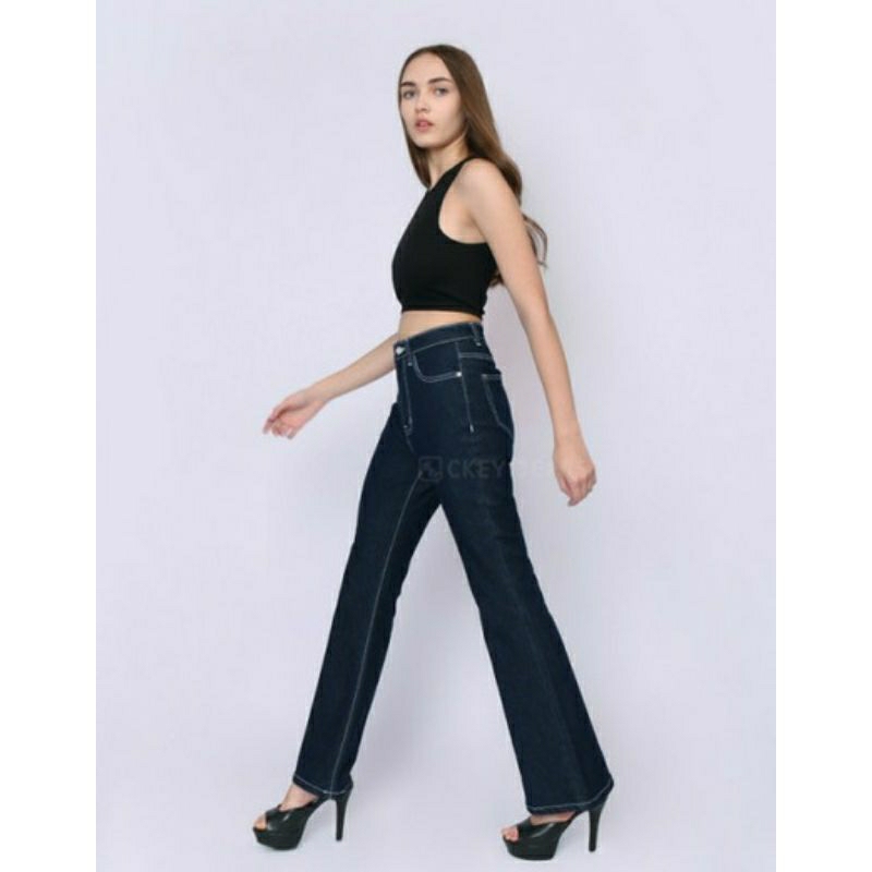 Ckey Cutbray Jeans Wanita High waist Garment