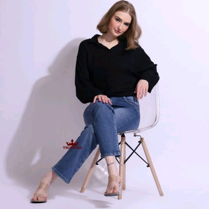 trinitas WIDE LEG highwaist / loose jeans / semi kulot stret softjeans like korea style