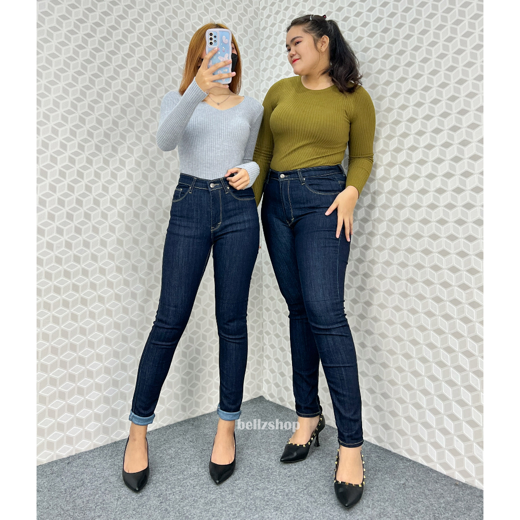 Celana Highwaist Wanita Jeans Skinny Stretch Jumbo Kekinian Premium Biru Garment 4481 Size 27 sd 34