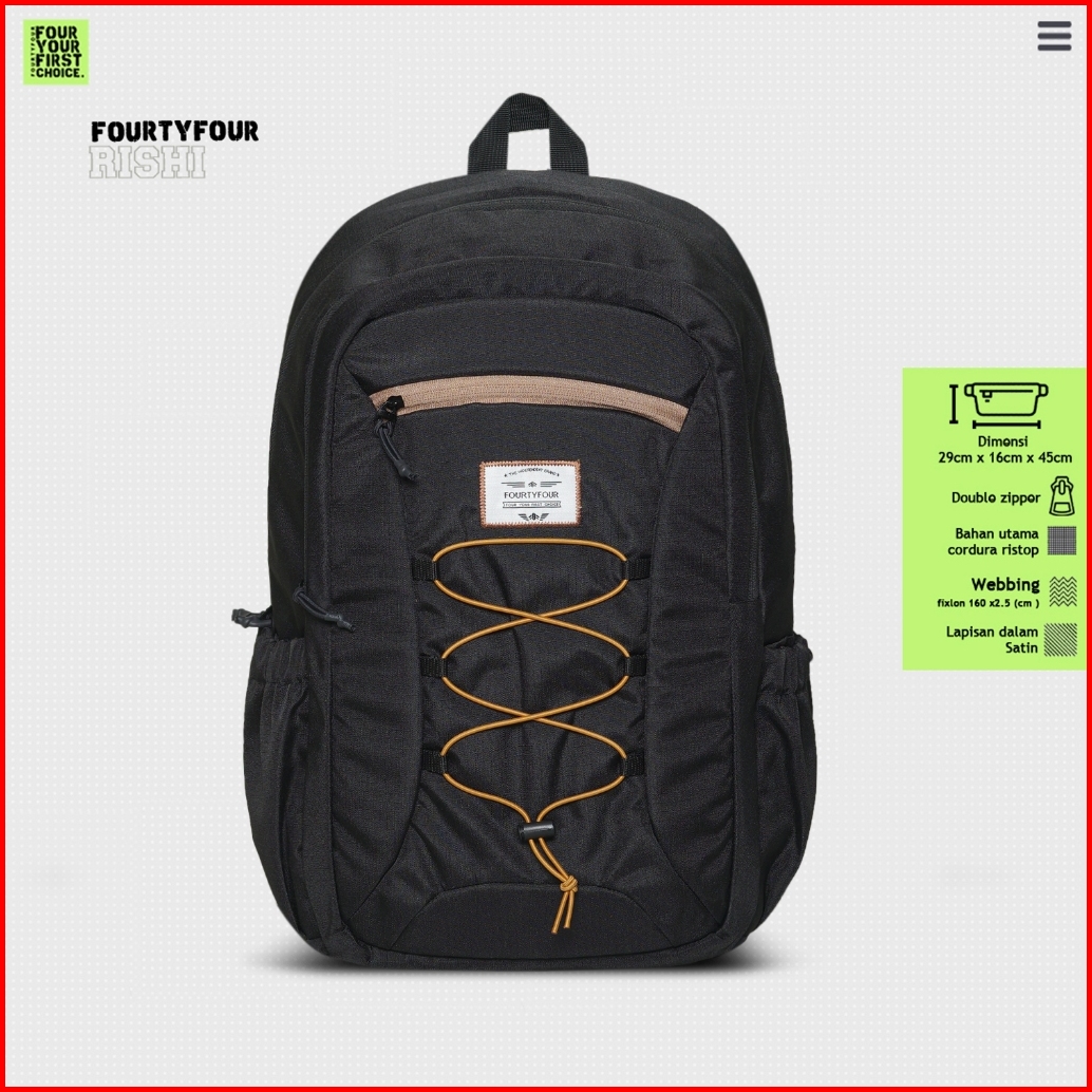 Tas Ransel Pria Fourtyfour Rishi - Backpack Kasual Premium Tas Laptop