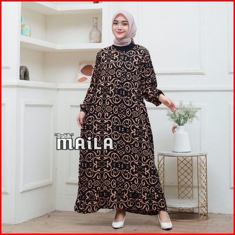 Daster Dress Rayon Rempel Motif Kekinian Lengan Panjang Busui Friendly