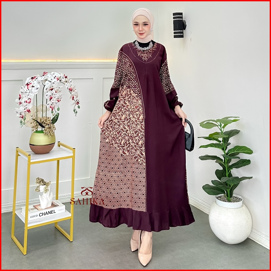 Kejora Dress Rayon Rempel Busui Lengan Panjang Homedress Daster Batik Adem Tebal Nyaman