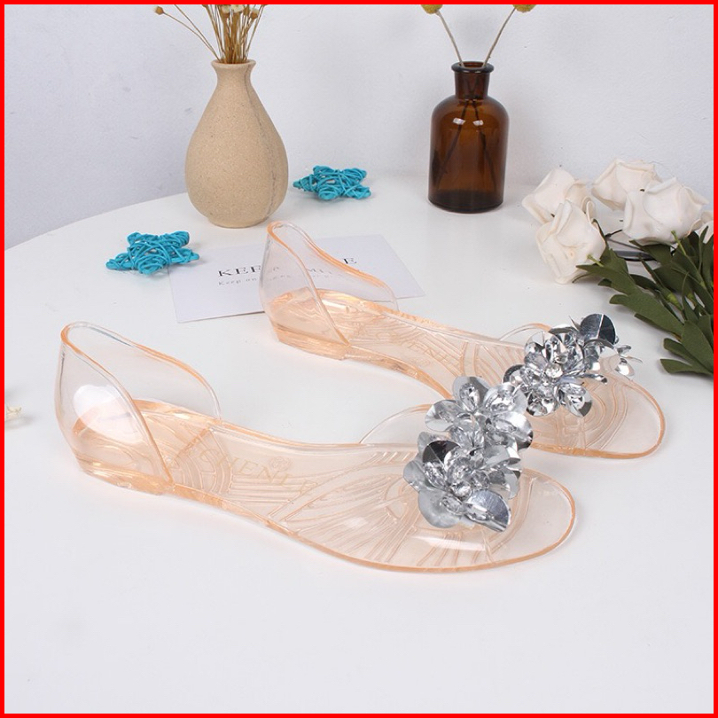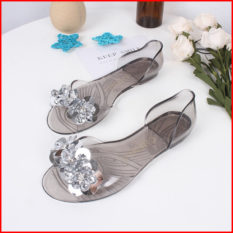 Allica Korean Pailette Embllished Jelly Sandal Sandal Jelly Wanita Sandal Transparat