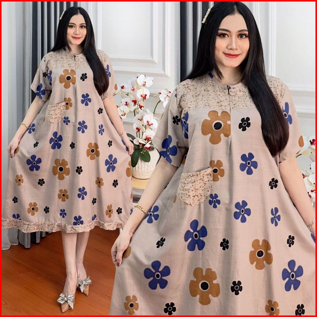 Daster Rayon Jumbo Busui Bumil Resleting Depan Lengan Pendek Batik Wanita Kekinian Batikbatara