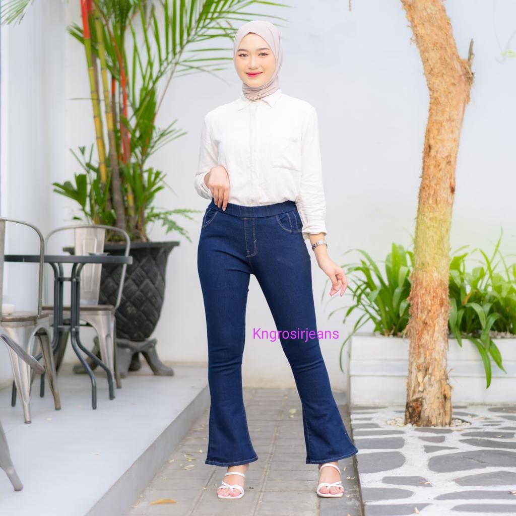 celana jeans wanita cutbray pinggang karet cutbray bahan setrit