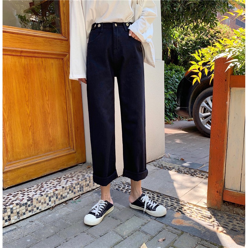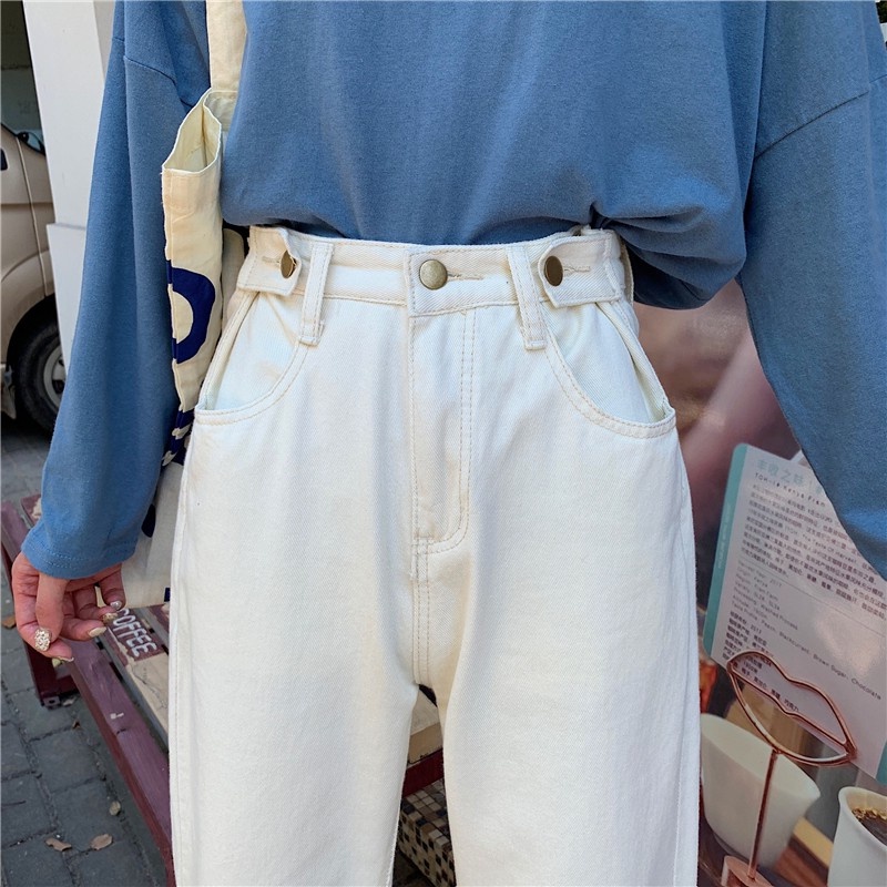 Jeans Wanita Kekinian Celana High Waist Harem Pants Loose Korean Style Jins