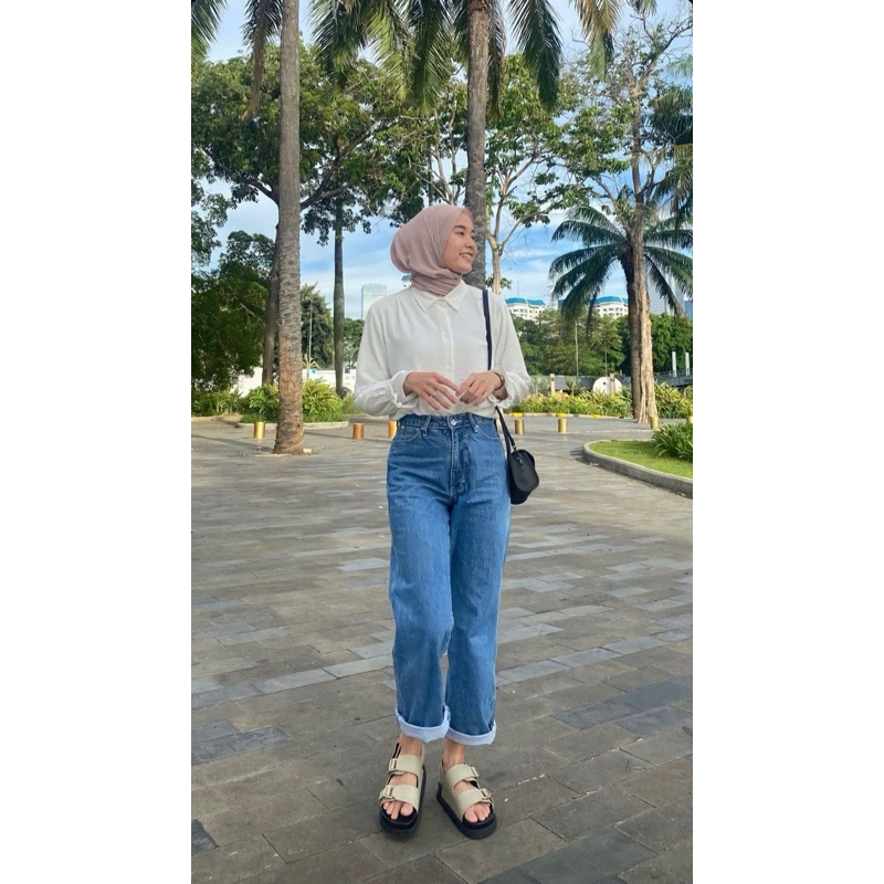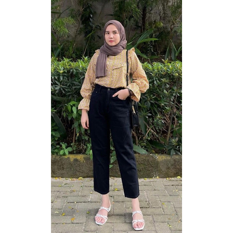 TheGirlHouse - MOM JEANS BOYFRIEND HIGHWAIST PINGGANG KARET