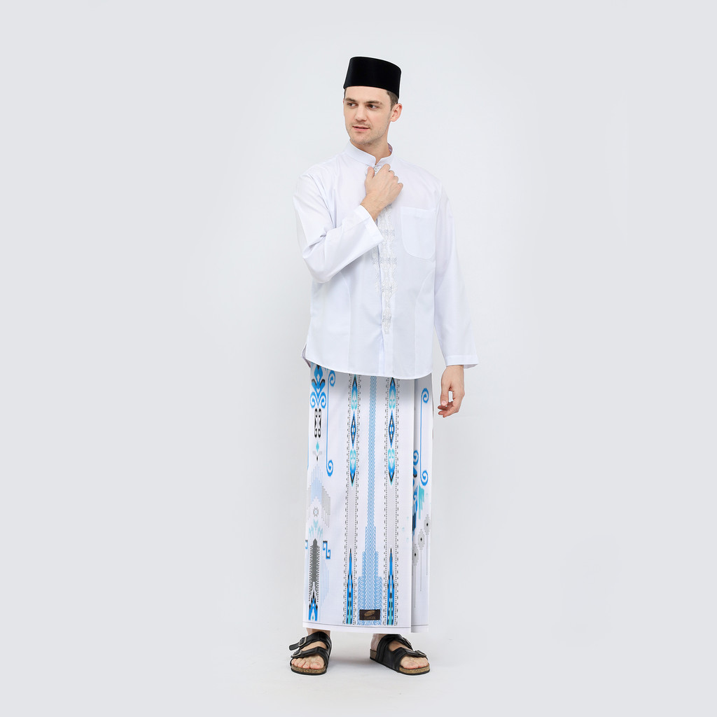 Sarung ATLAS Idaman 555 Kembang Motif BHS GSB 01 Putih Biru