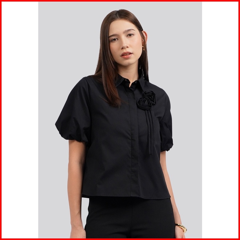 Executive Embellished Ballon Sleeve Blouse Black