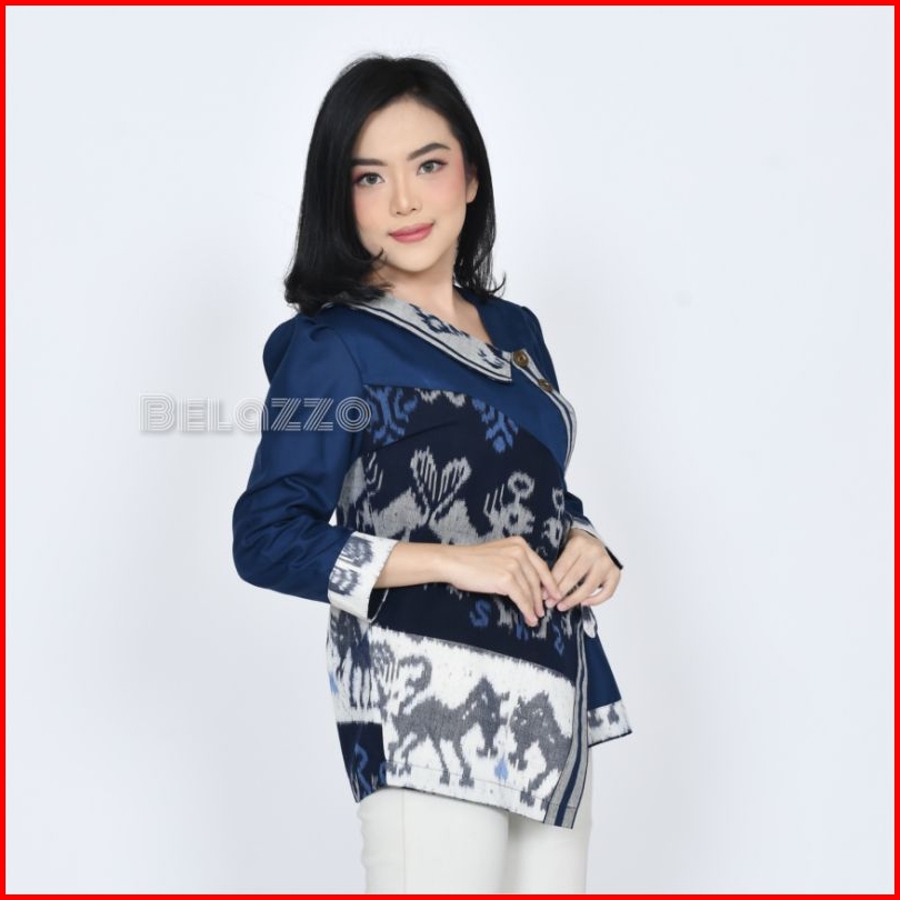 Belazzo - Blouse C Series Navy Sumba Atasan Wanita Batik Tenun Modern.