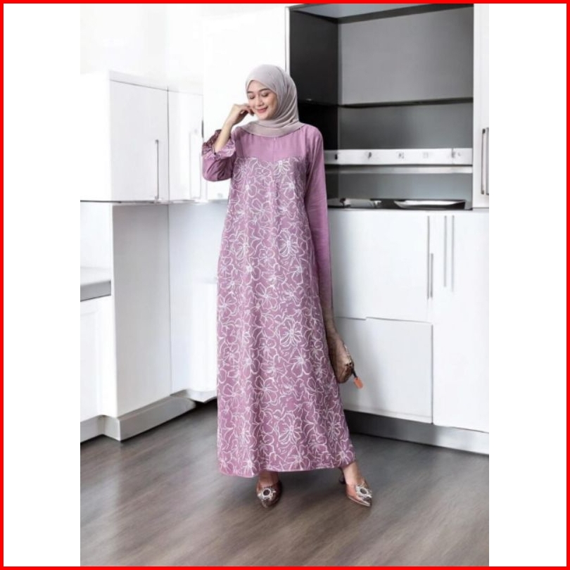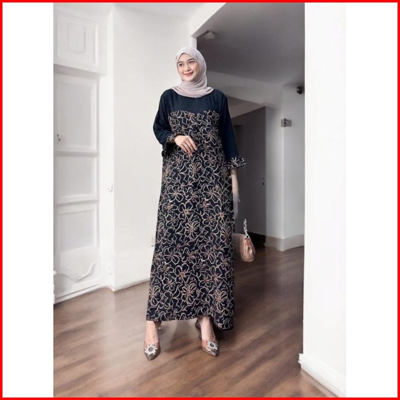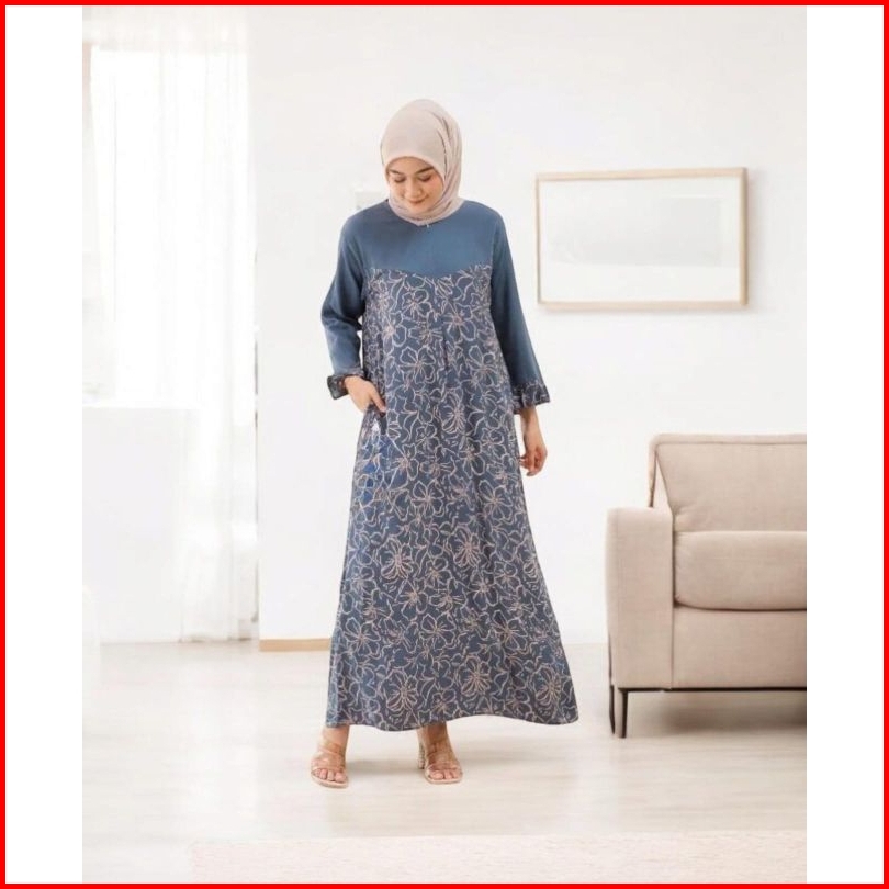 Dress Rayon Busui Lengan Panjang Kombinasi Polos Dan Motif Daster Kekinian Home Dress Batik