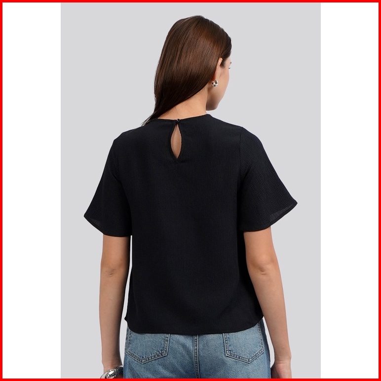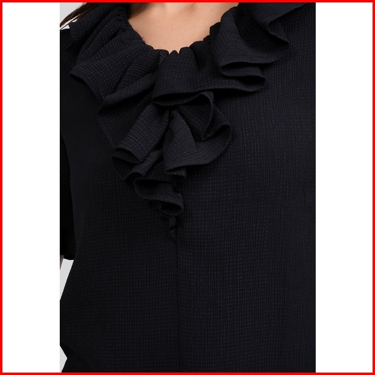 Executive Ruffled V-neck Short Sleeve Blouse Black