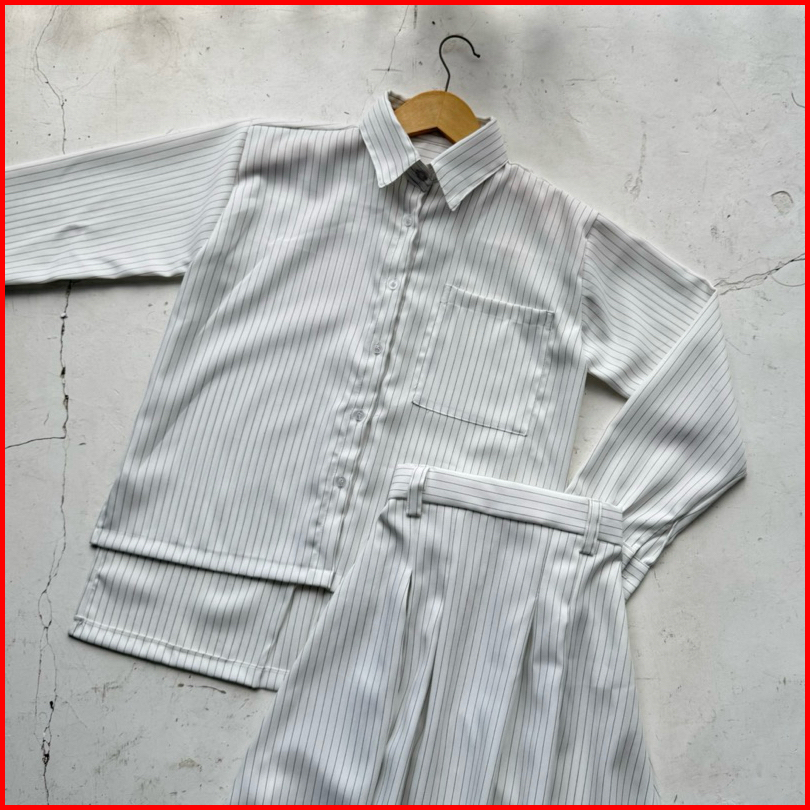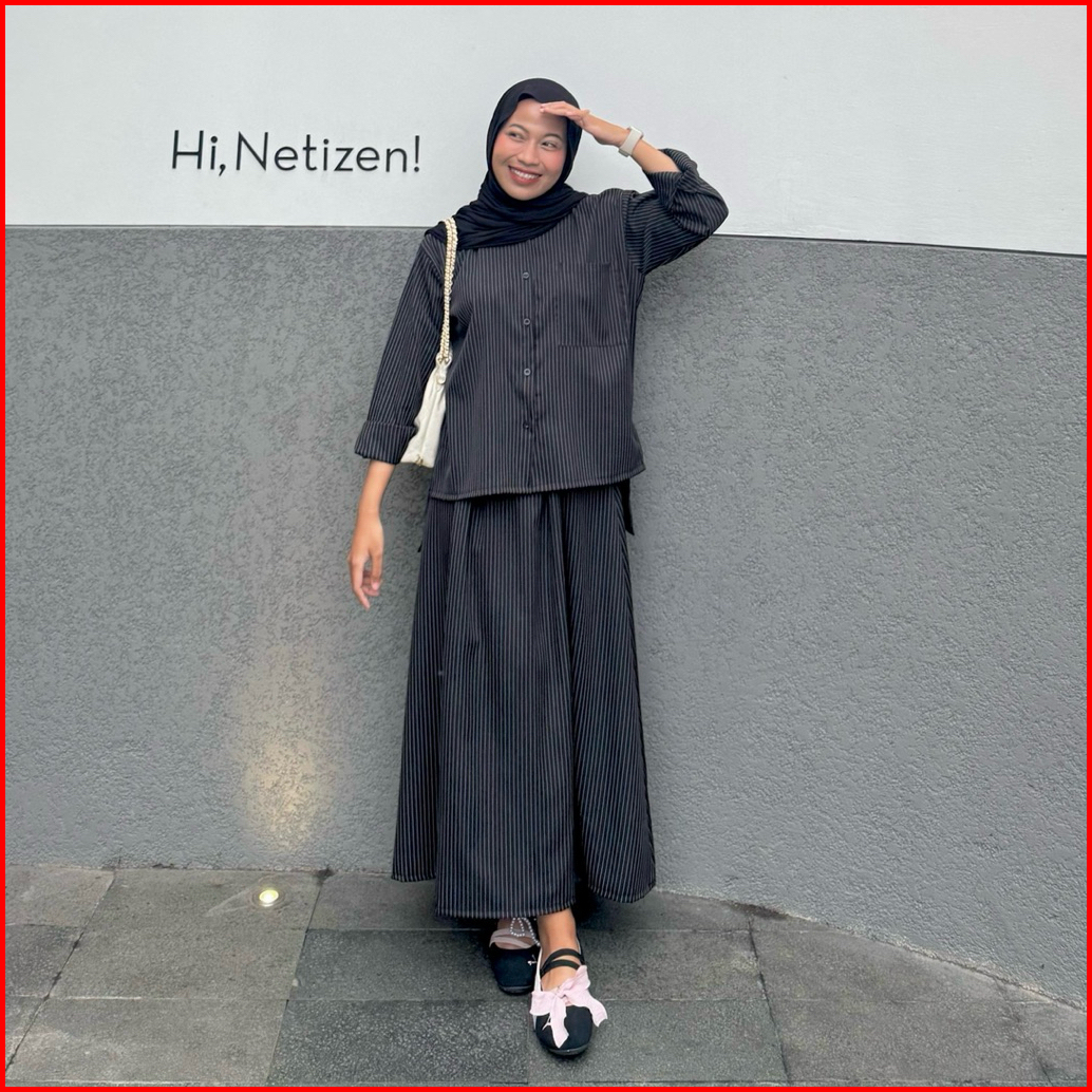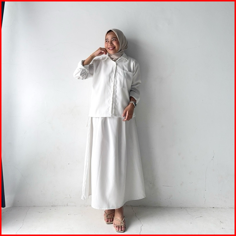Maraya Set - Arrawear - Baju One Set - Setelan Kemeja Dan Rok - One Set Raya - Setelan Wanita Salur - Stripe Shirt