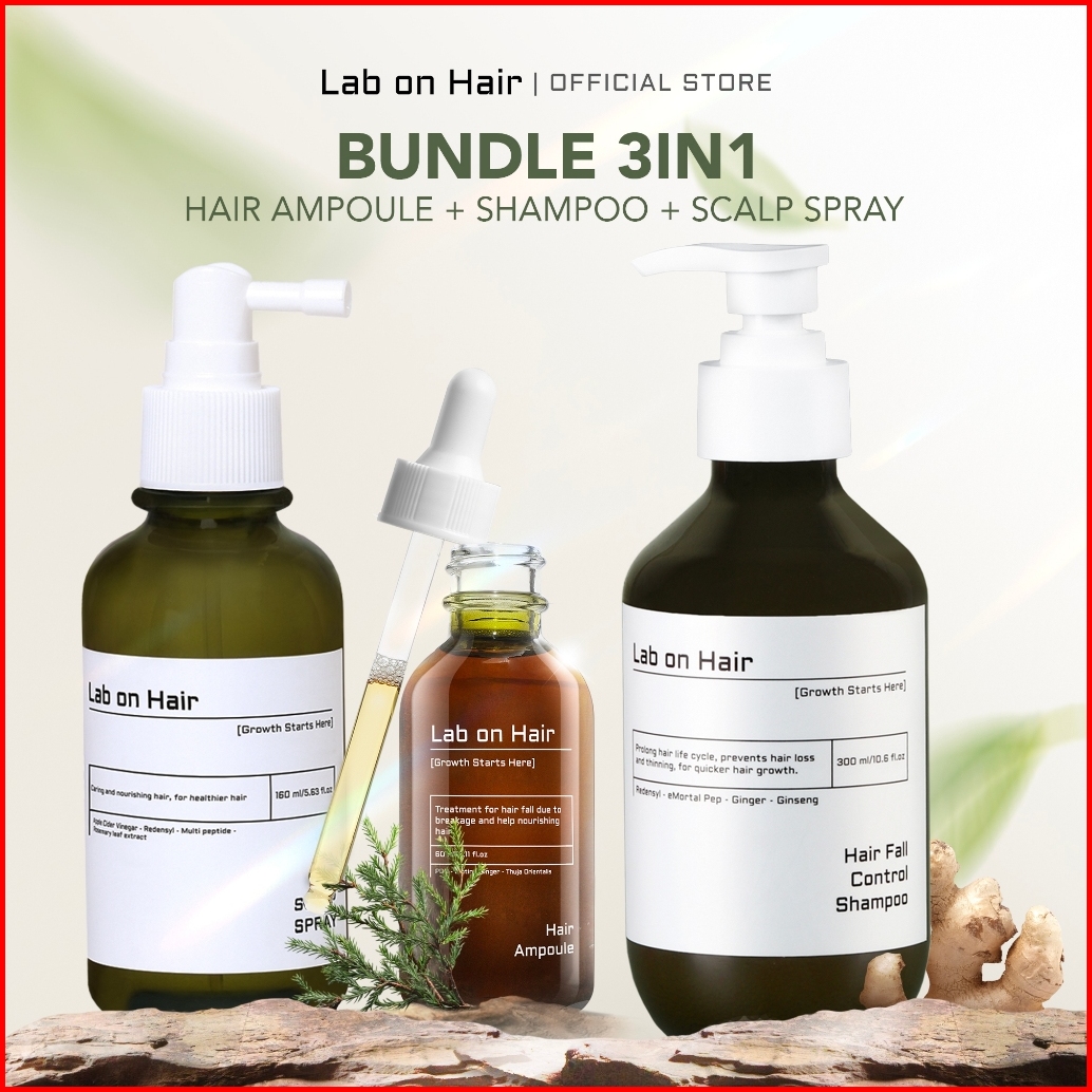 Lab On Hair Bundle 3in1 Anti Hair Fall Shampoo Scalp Spray Ampoule - Paket Shampo Ampoule Dan Scalp Spray Anti Rontok Ke