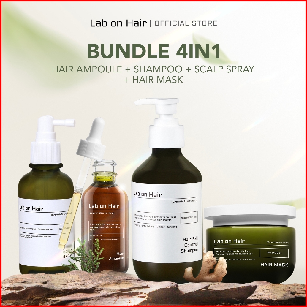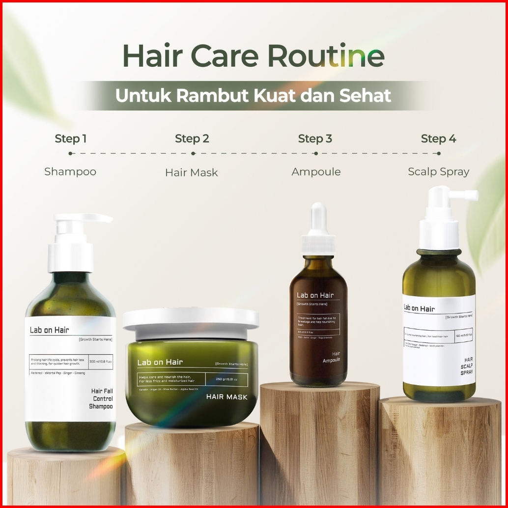 Lab On Hair Bundle 4in1 Shampoo Ampoule Scalp Spray Hair Mask - Paket Lengkap Perawatan Rambut Untuk Menjaga Kesehatan K