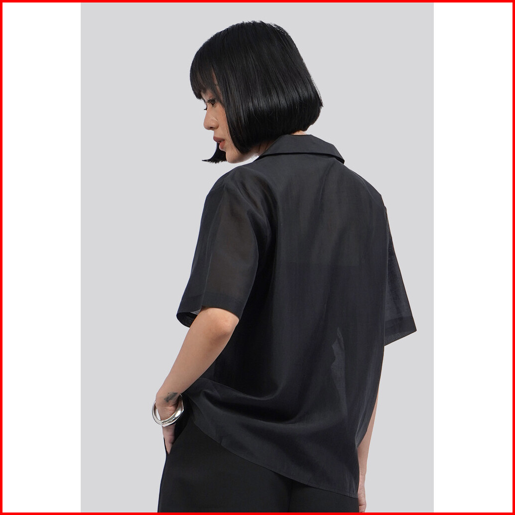Executive Short Sleeve Sheer Blouse Black