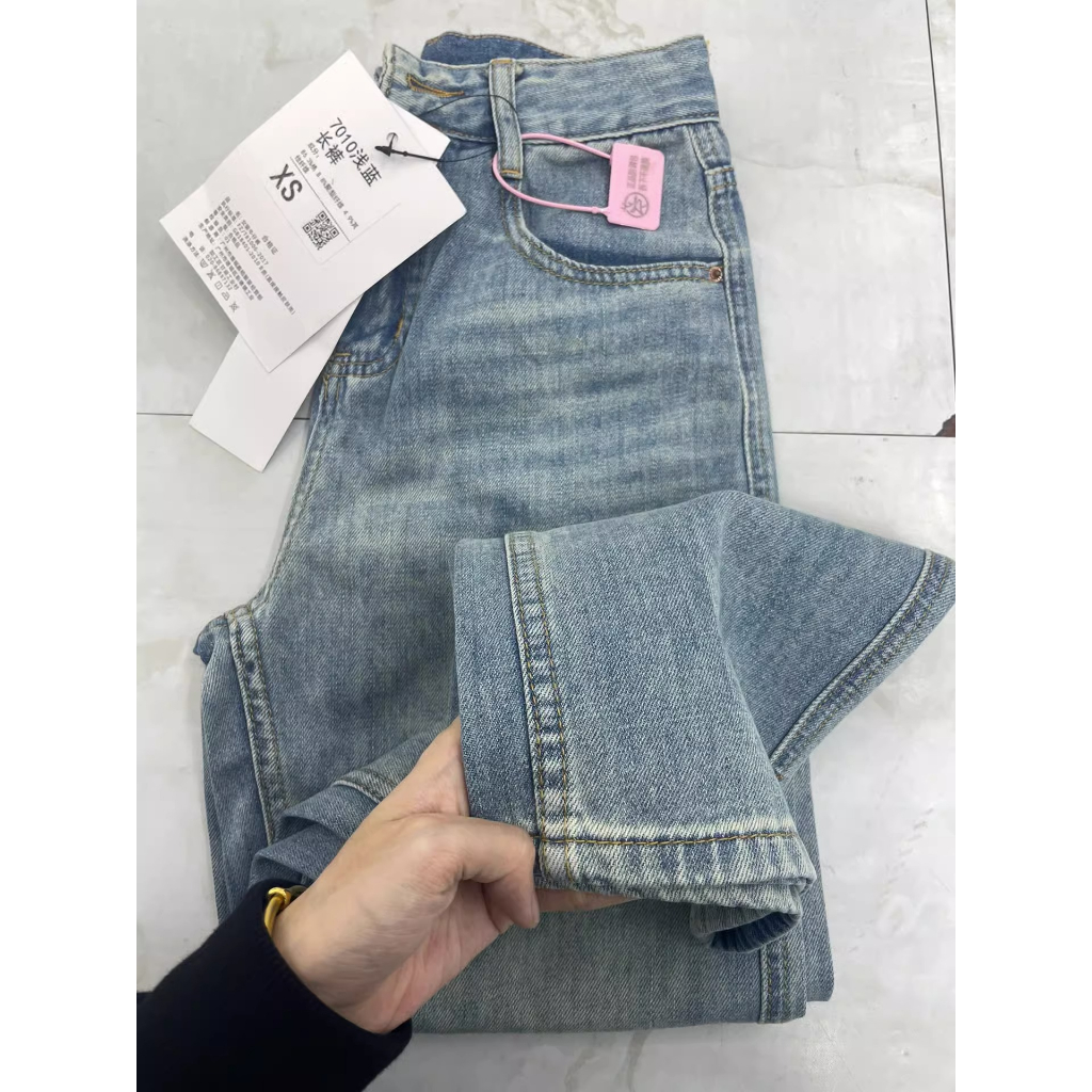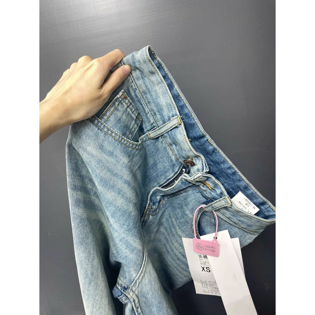 Retro Amerika Lurus Celana Jeans Wanita Highwaist