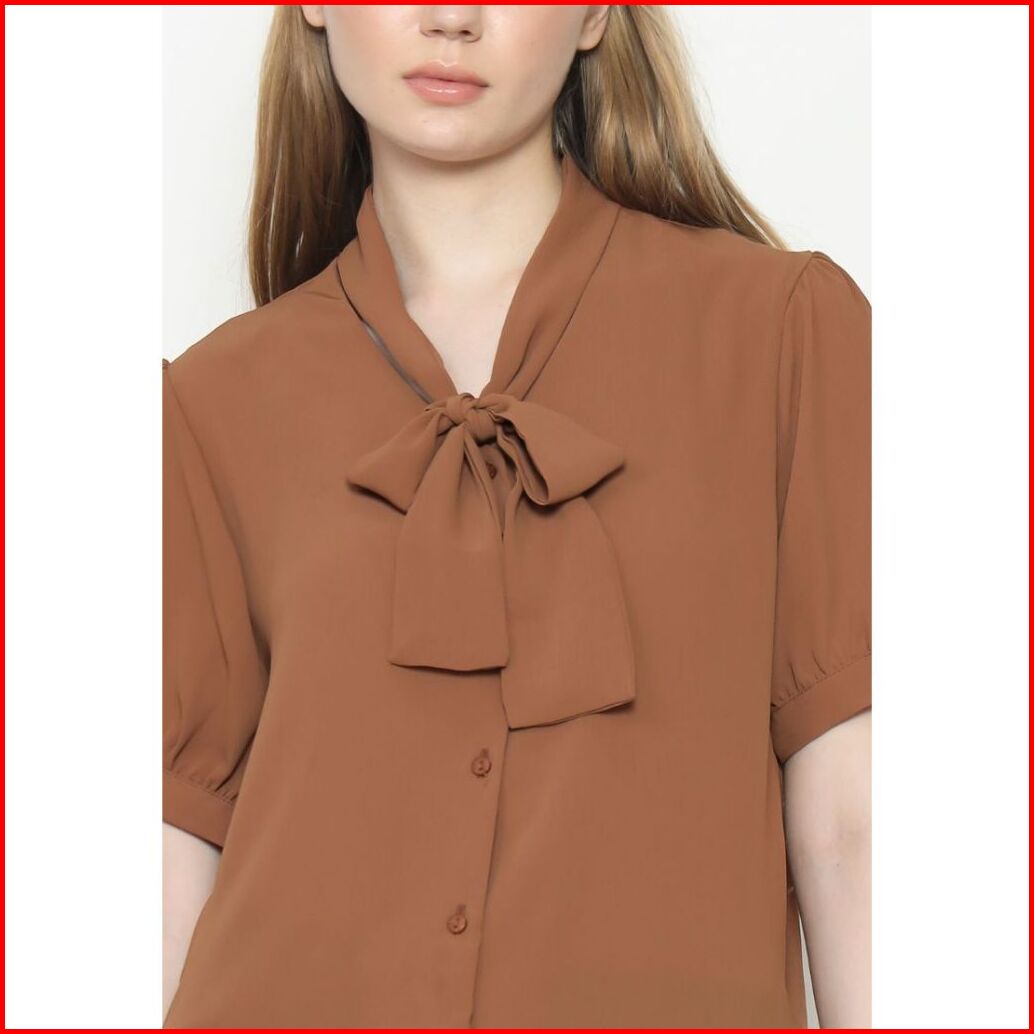 Urban Exchange Anna Brown Blouse - Blouse Formal Berpita Lengan Pendek