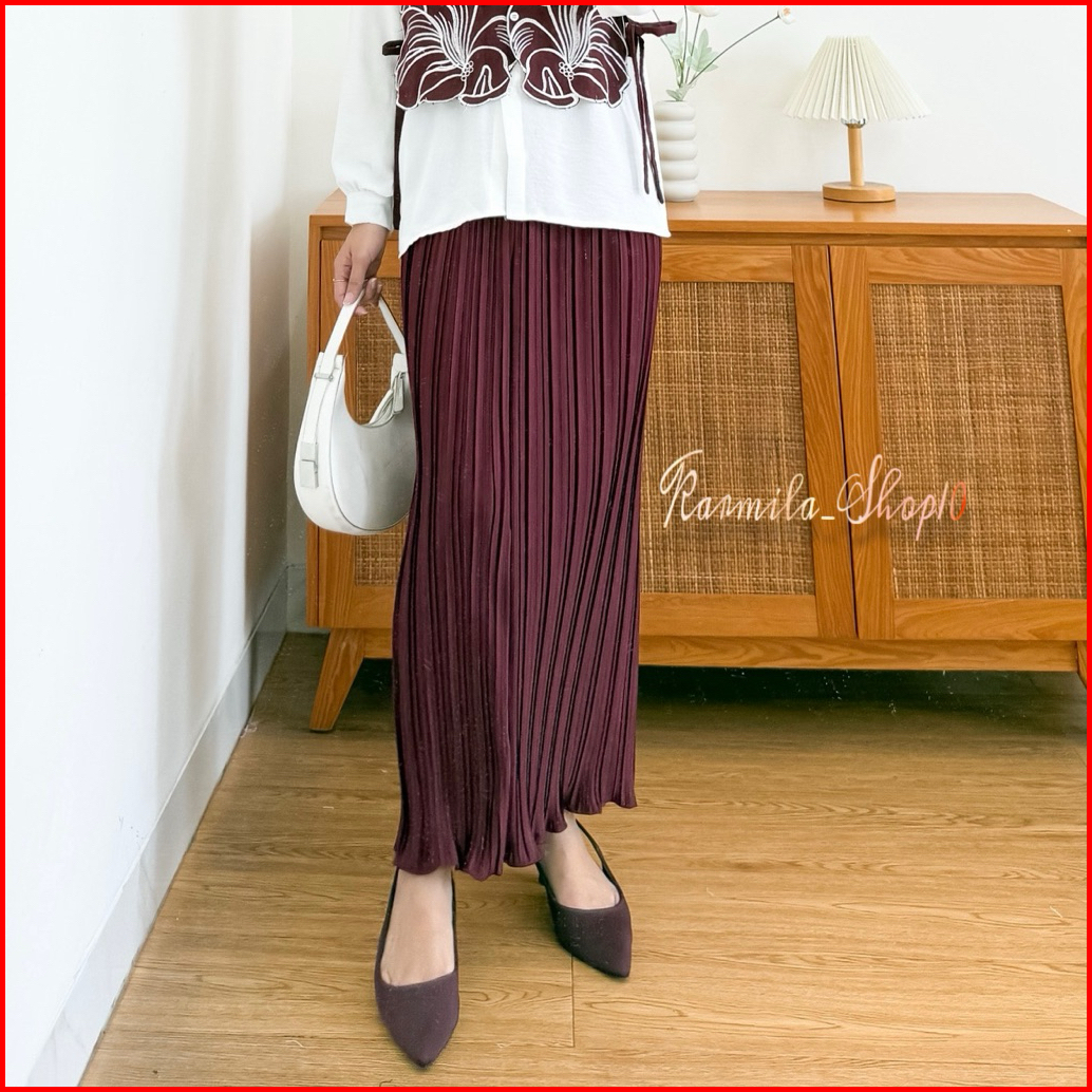 Rok Bb Span Panjang Rok Bb Wavy Pola Gelombang Rok Span Wanita