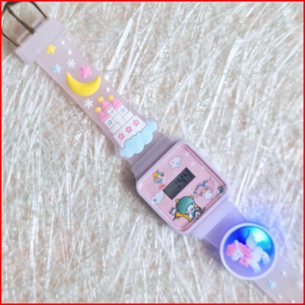 Jam Tangan Anak Balita Digital Lampu Karakter Sanrio Kuromi Lucu