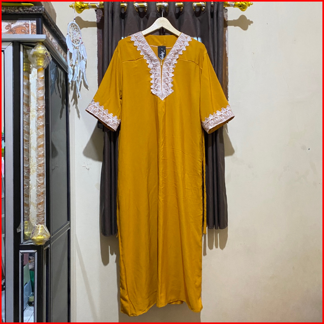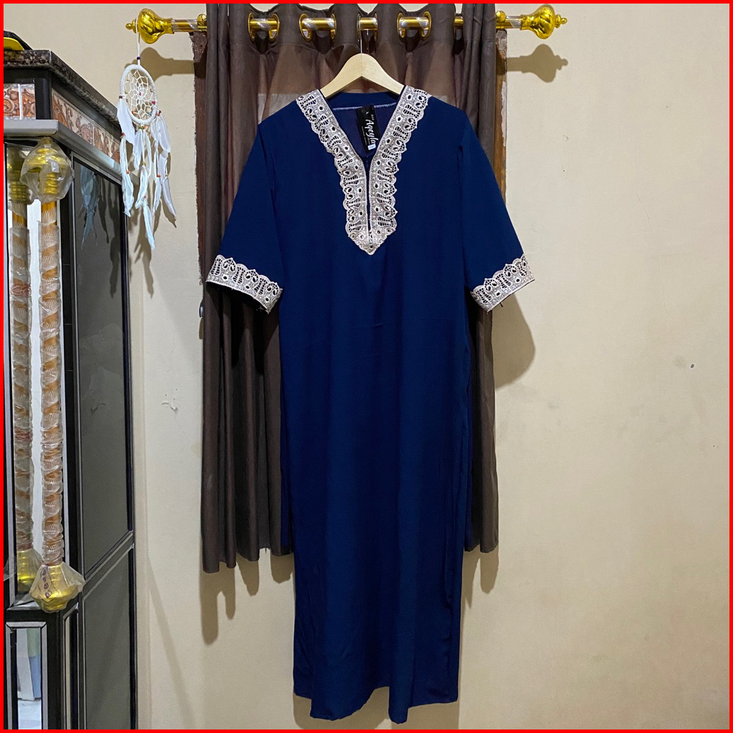 Daster Arab Zeema Jumbo Ld 120 Resleting Depan Busui Renda Milo Rayon Grade A Ori