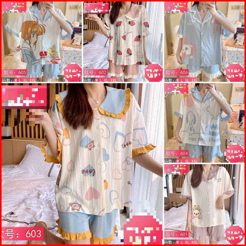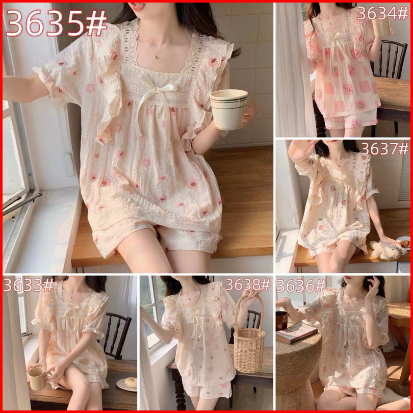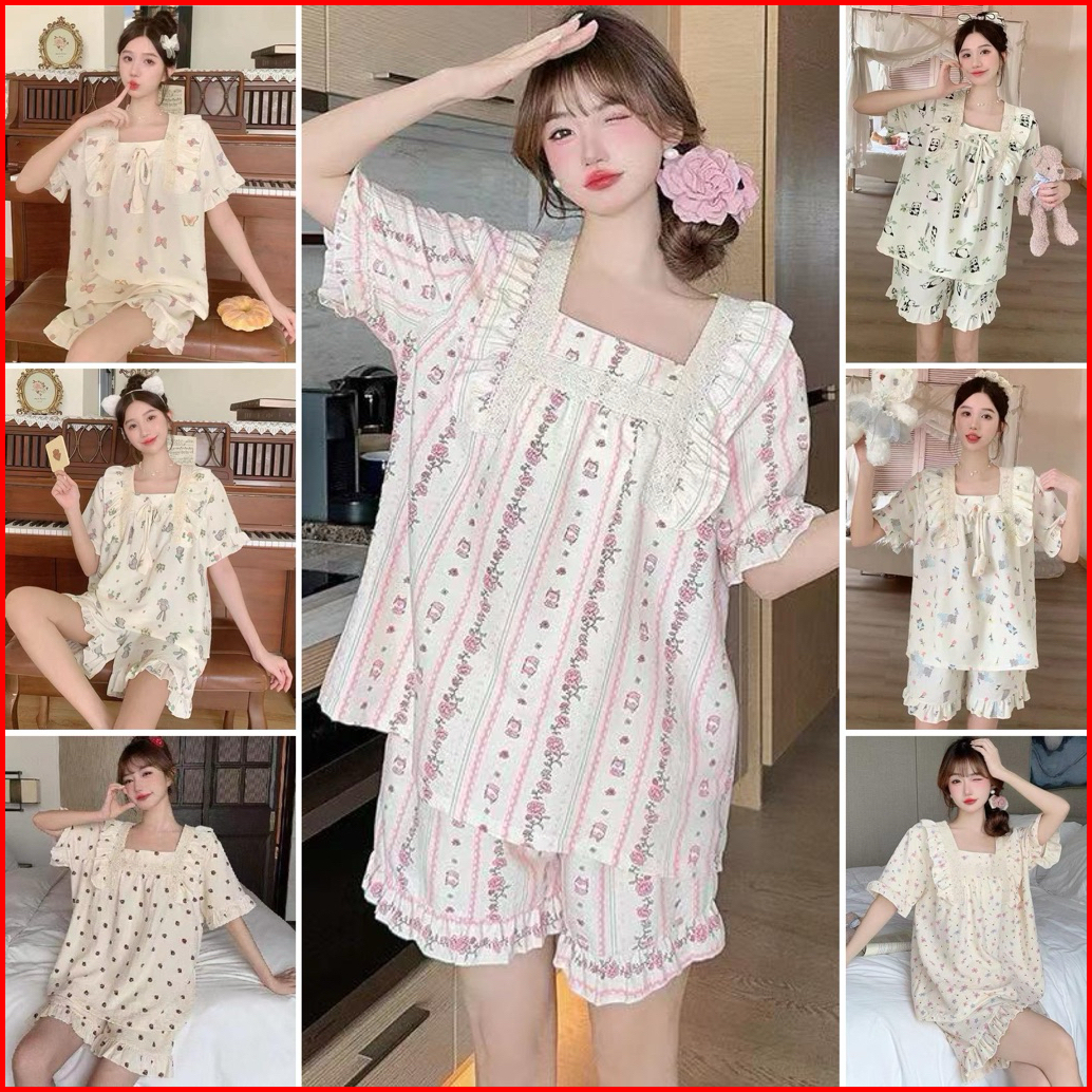 Setelan Piyama Import Lucu Ruffle Renda Model Korea Premium Baju Tidur Wanita Import Home Daily Wear Adem