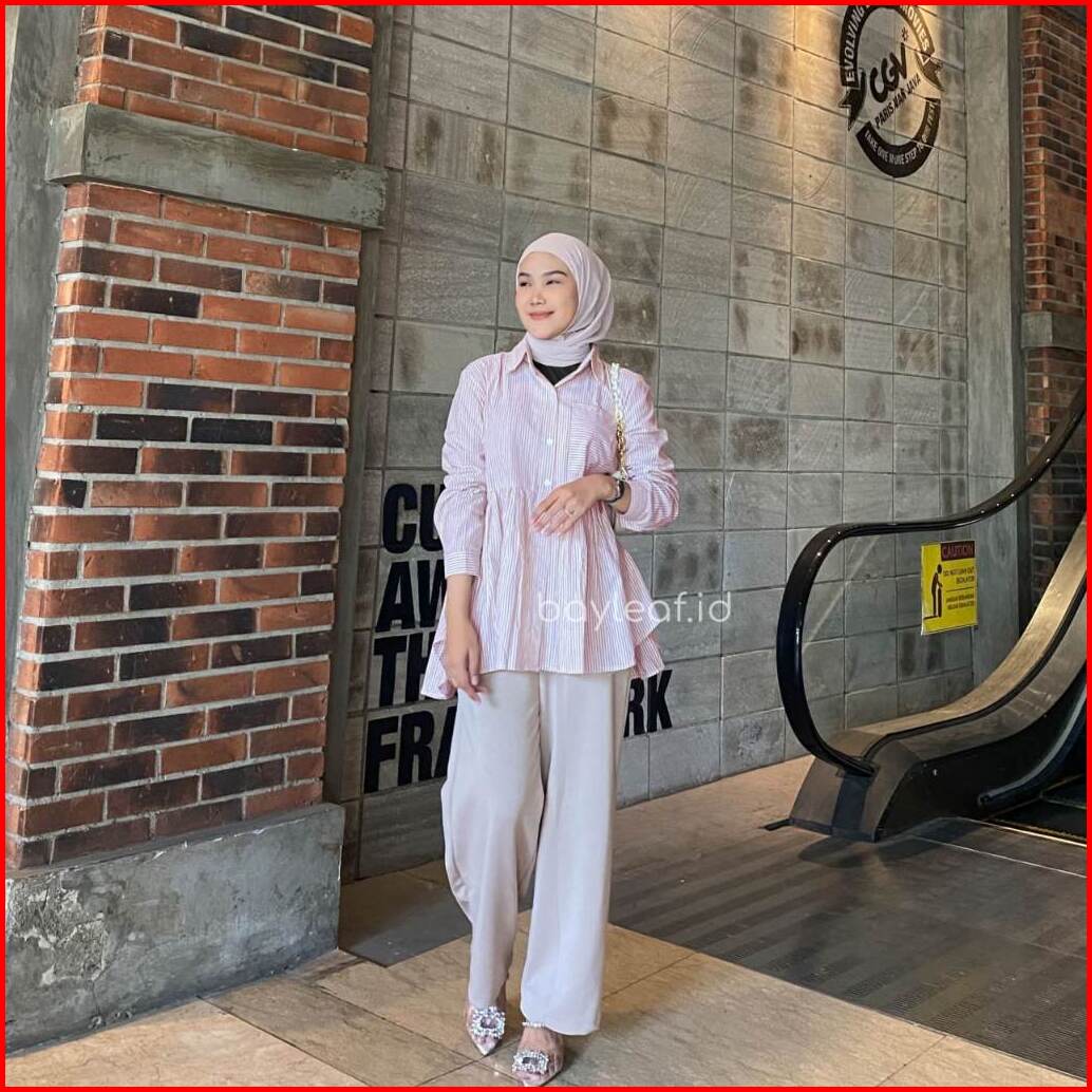 Bayleaf.id Astrid Striped Blouse Katun Atasan Blouse Casual Wanita Motif Garis Blouse Lucu Garis Big Size