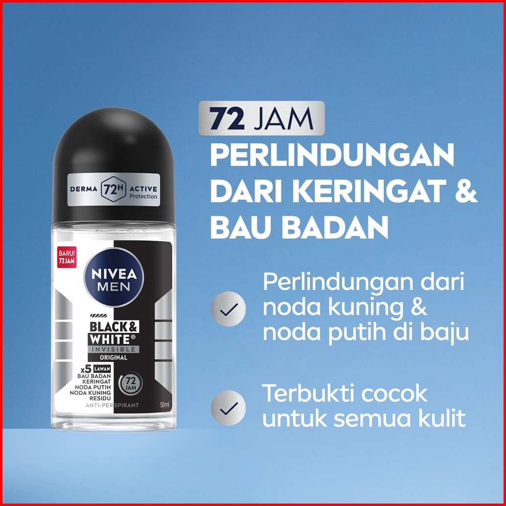 Paket Hemat Isi 2 Nivea Men Deodorant Roll On Black White Invisible Original 50ml - Deodoran Pria Melawan Bakteri Kering
