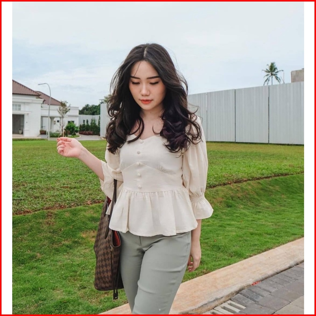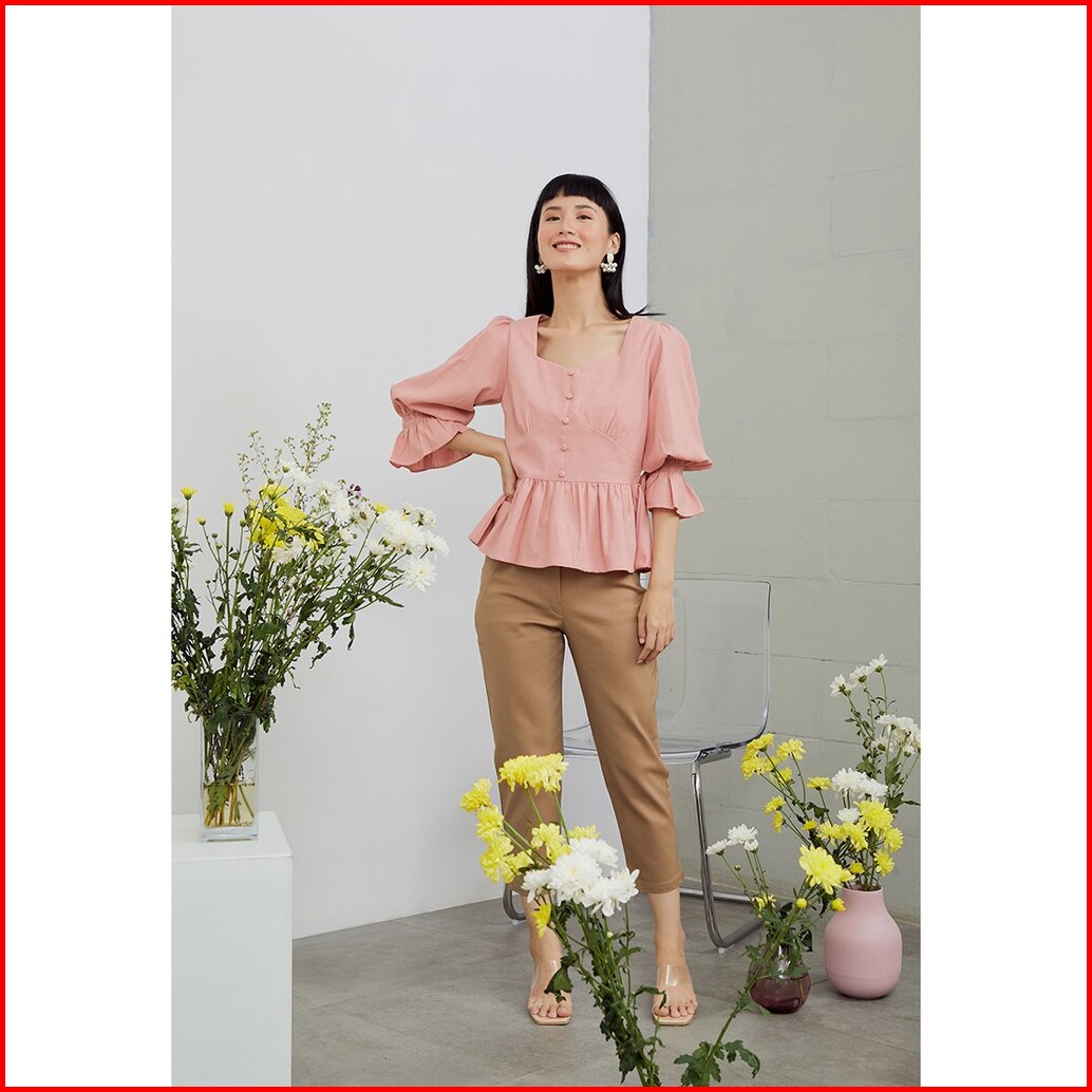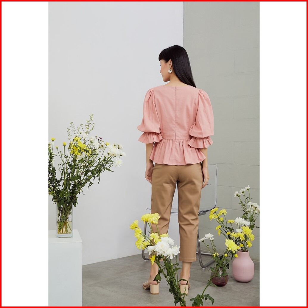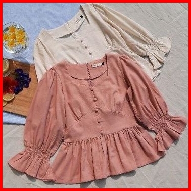 Style Butik Camellia Puff Sleeves Linen Vintage Blouse