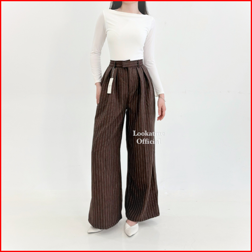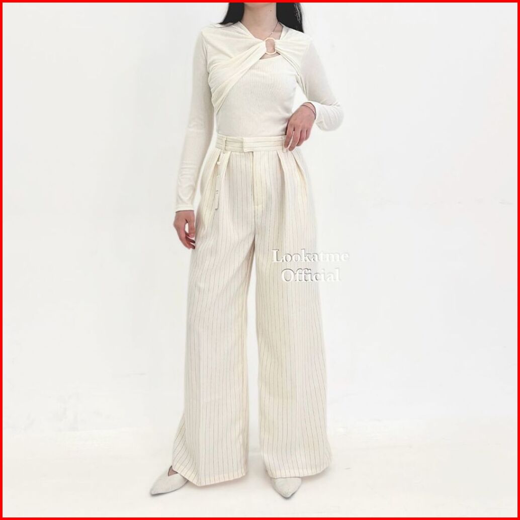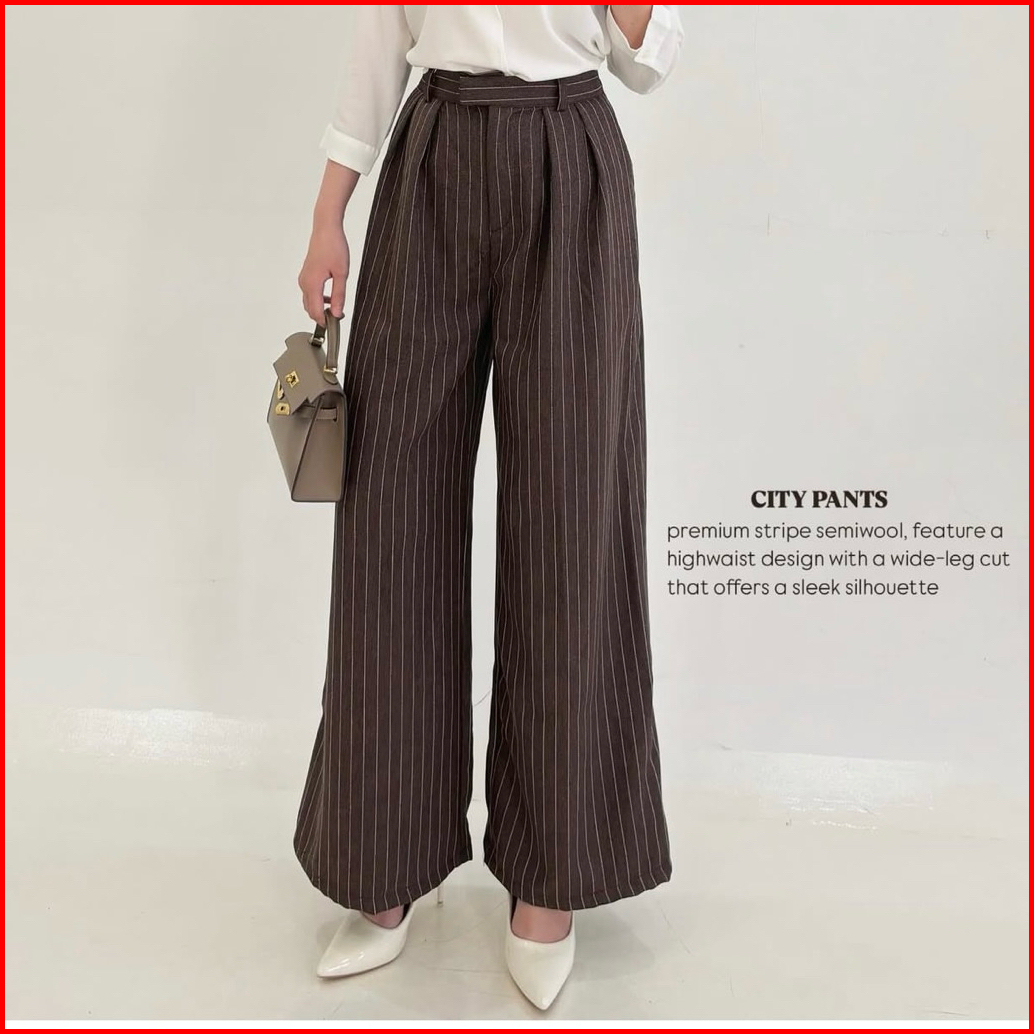 City Pants - Celana Kulot Stripe Loose Pants Celana Panjang Kantor Wanita Formal Classy Look Wide Leg Pants