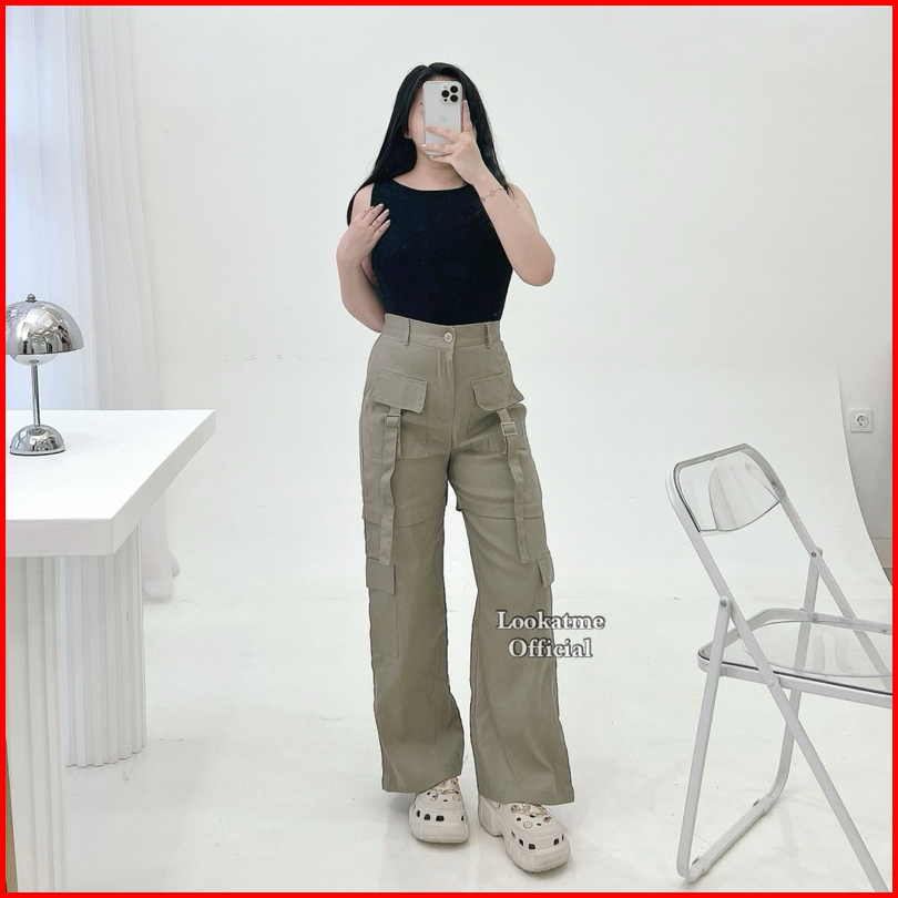 Cora Pants - Celana Kulot Kargo Highwaist Wanita Bahan Chinos Tebal Premium Celana Panjang Wanita Lembut Melar Nyaman Ca