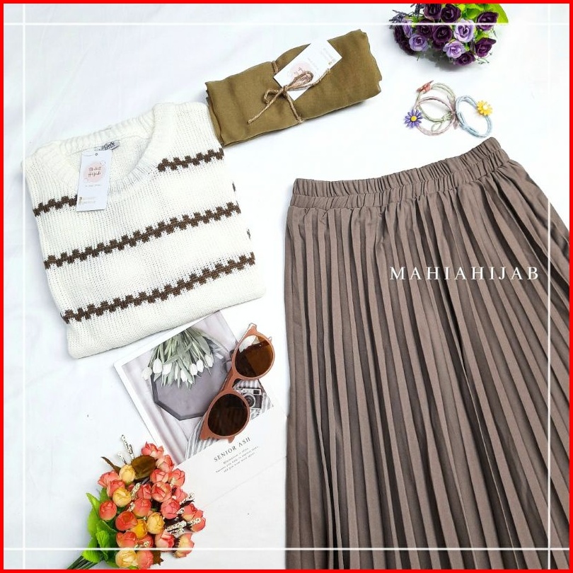 Kimi One Set Sweater Rok Plisket By Mahiahijab Outfit Paket Hemat Ootd Korean Style Setelan Lengkap