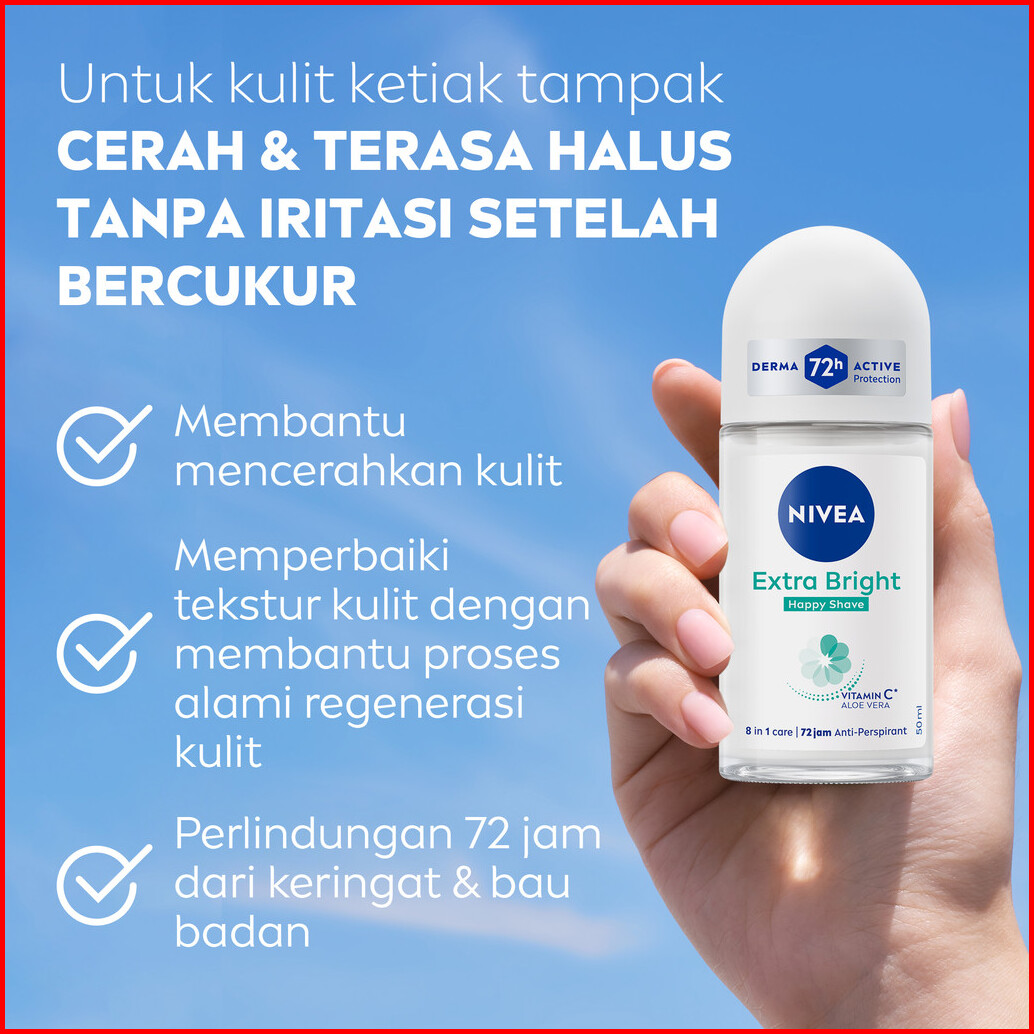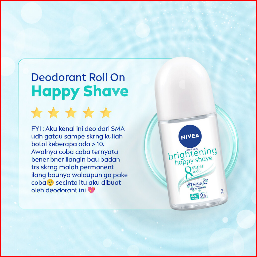 Nivea Deodorant Roll On Brightening Happy Shave 50ml - Deodoran Wanita Mencerahkan Mencerahkan Brightening Ketiak Halus