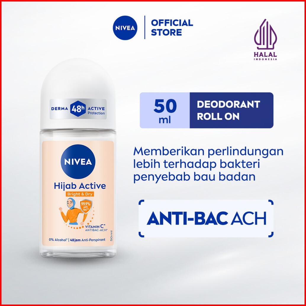 Nivea Deodorant Roll On Brightening Anti Bacterial 50ml - Deodoran Wanita Hijab Antiperspirant Dan Anti Bakteri Tahan Ba